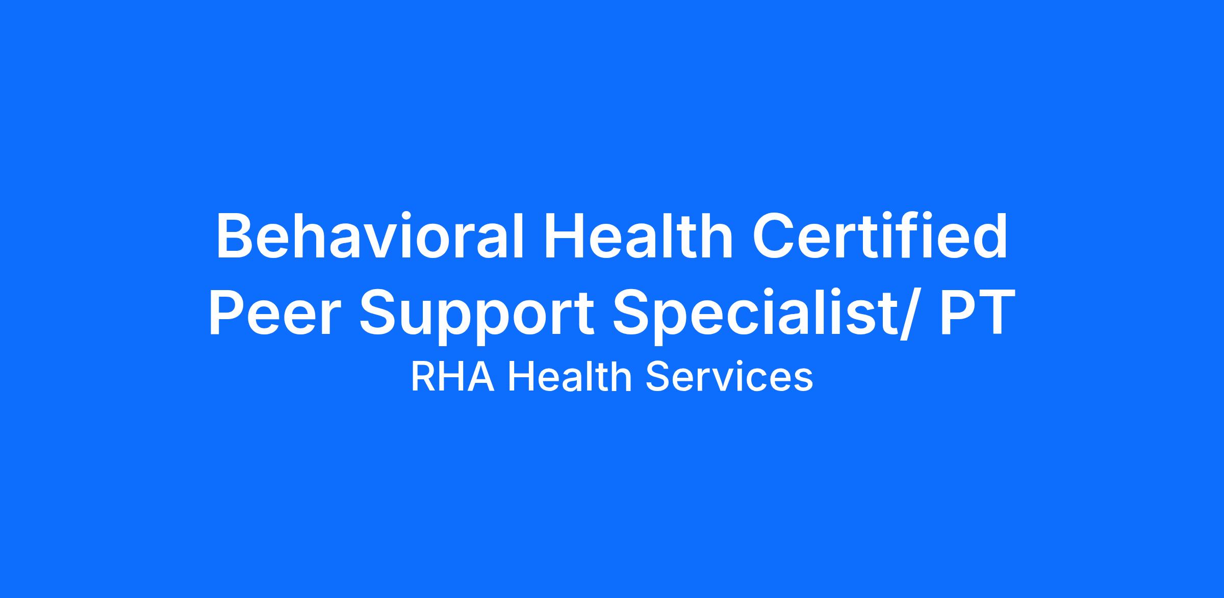 Behavioral Health Certified Peer Support Specialist/ PTType: