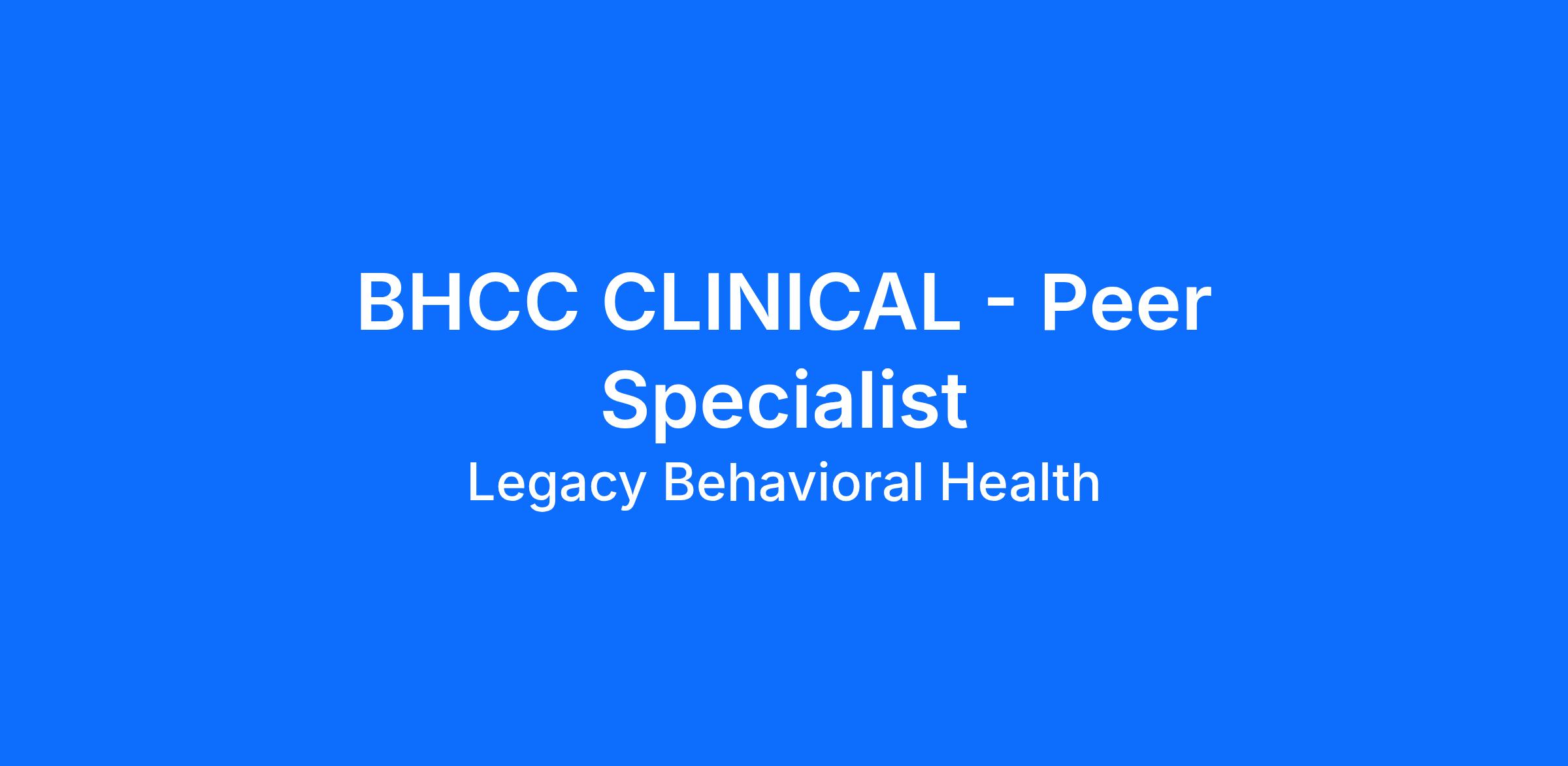 ¡Legacy Behavioral Health Services está contratando personas apasionadas por marcar la diferencia en su comunidad! Buscamos un par especialista certificado para trabajar en nuestro equipo BHCC. Bajo la supervisión general de los servicios de pares y el programa dedicado, brinda servicios de apoyo de pares al programa en forma de facilitación grupal y apoyo de pares individualizado. Realiza una amplia gama de tareas para ayudar a sus pares a recuperar el control sobre sus propias vidas y su proceso de recuperación, incluida la promoción, la provisión de recursos para conectarse con otros pares, el desarrollo del plan WRAP y el uso de experiencias vividas e historias de recuperación personal. Funciona como un modelo a seguir para mantener la recuperación y la utilización continua de herramientas de bienestar y recuperación. Supervisa el progreso de sus compañeros hacia los objetivos del tratamiento. Se requiere documentación extensa; traza con precisión los servicios y el progreso de los pares. Participa en sesiones de dotación de personal/planificación y ofrece una perspectiva de pares sobre el tratamiento.