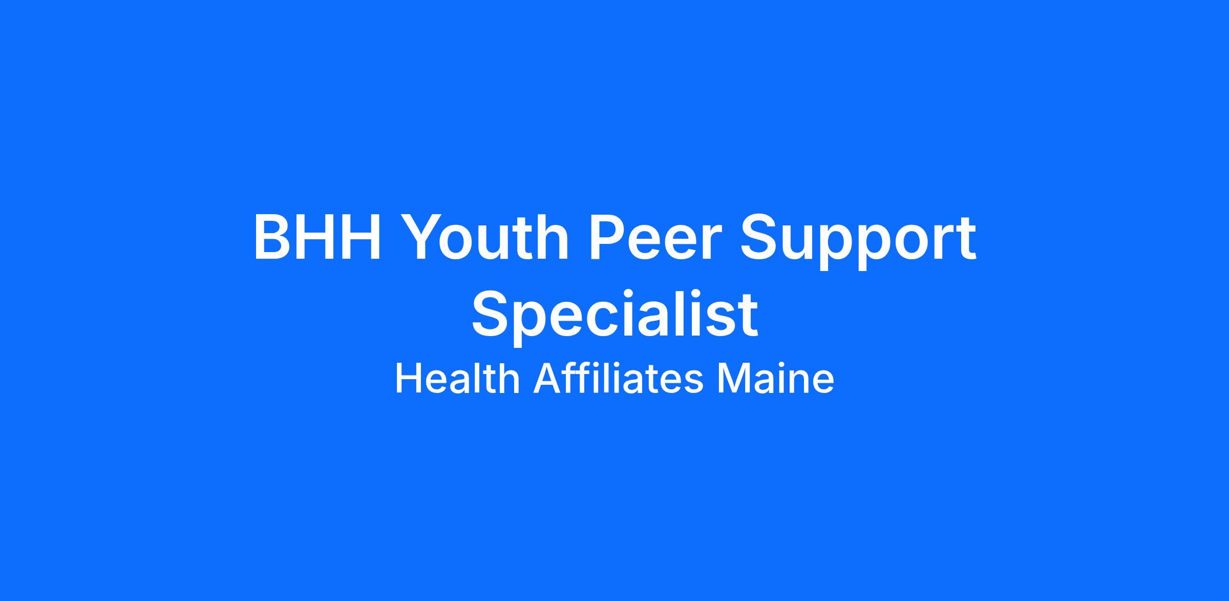 Health Affiliates Maine is seeking a Behavioral Health Home (BHH) Youth Peer Support Specialist to join our team. This community-based program offers a holistic, integrated approach to providing collaborative care to address mental health, medical, and other resource needs. This approach has a multi-provider perspective and increases the ability for the youth and/or family to access their needs and goals while learning self-management tools for ongoing success.