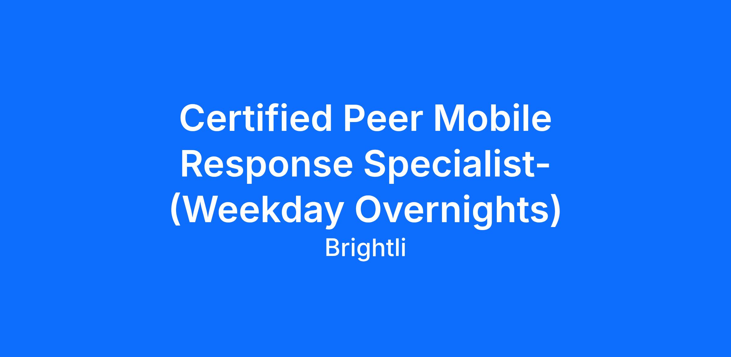 Job Title: Certified Peer Mobile Response Specialist