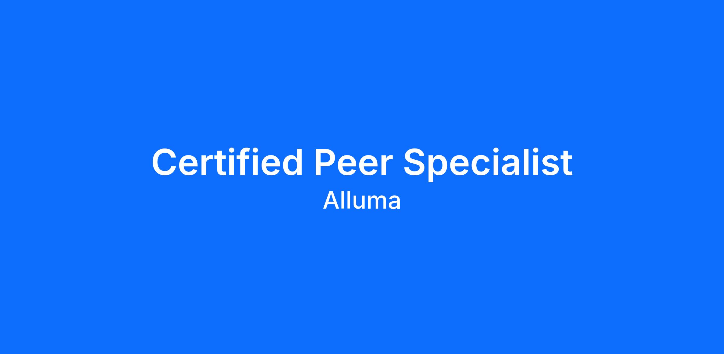 - Certification as a Peer Specialist (Obtained before employment or scheduled to attend with assistance from Alluma before employment).