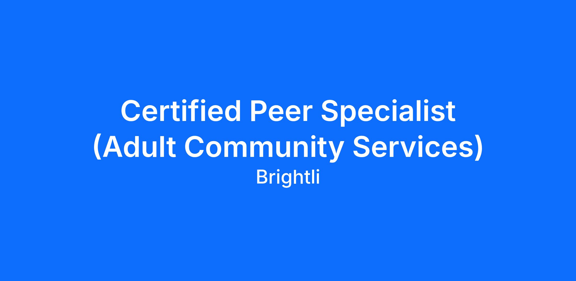 Job Title: Certified Peer Specialist
