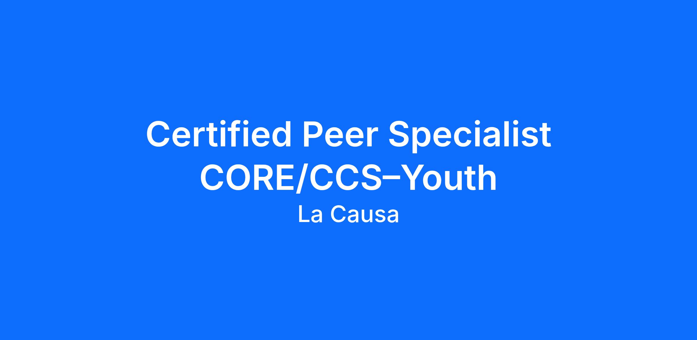 Apply on our Website Careers: Join Our Purpose & Support the Community - La Causaor reach out to our internal recruiter Wendy and wendyd@lacausa.orgBe part of something bigger. Join Familia La Causa and help us empower youth and families as a Certified Peer Specialist CORE/CCS–Youth Apply now and take the next step in your career!