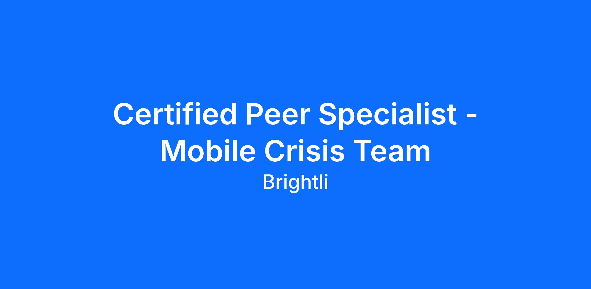 Job Title: Certified Peer Specialist - Mobile Crisis Team