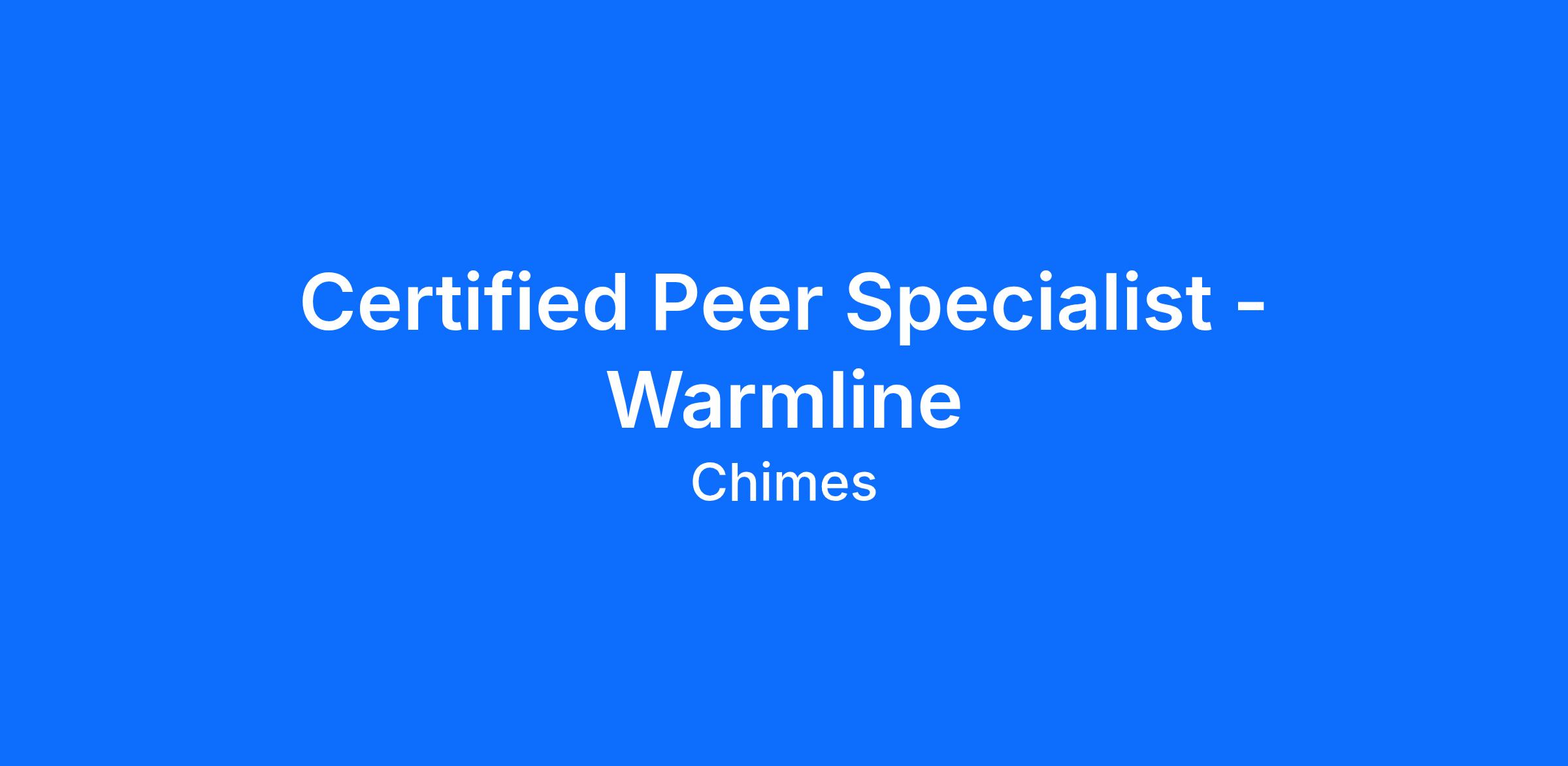 Job Description: It is the responsibility of the Warmline Peer Specialist to provide direct non-crisis supportive services to consumers living in agency residential programs, supported living programs, contacting the Warmline, or participating in the clubhouse programs.