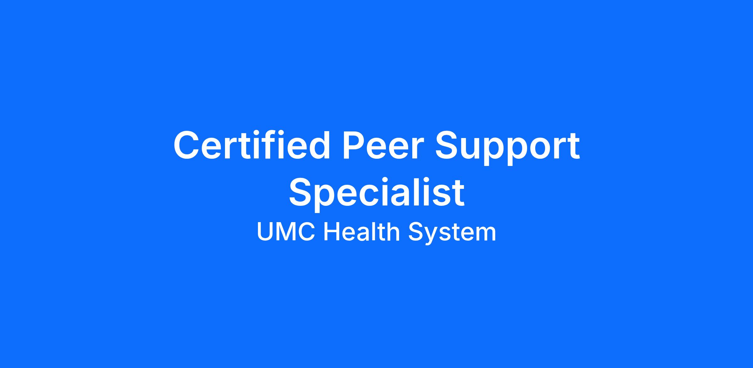 The Certified Peer Support Specialist is part of the primary care team for UMC Health System employees. The Peer Support Specialist is actively involved in addressing the social needs of employees and providing referral resources for needed care and treatment