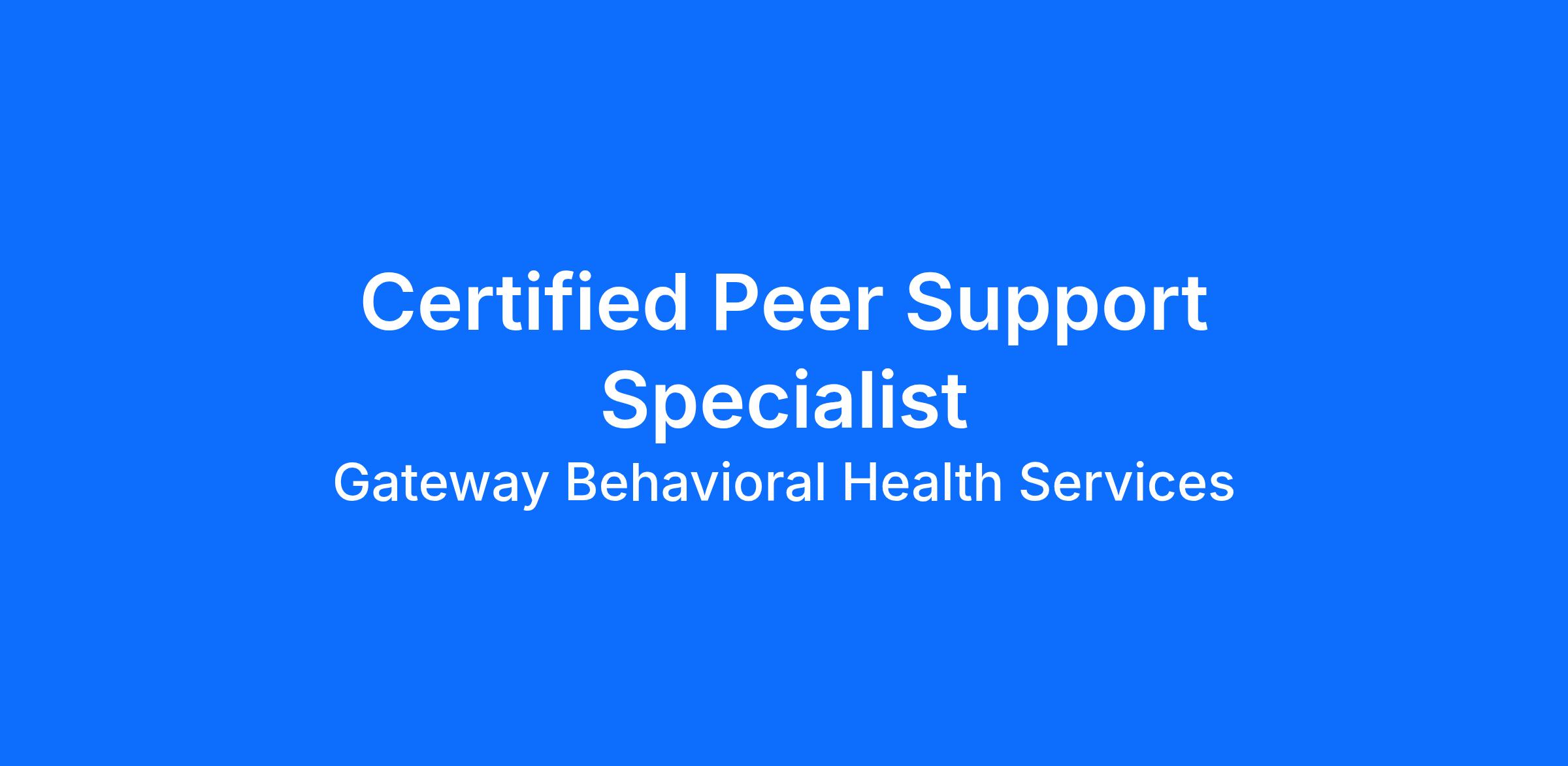 Gateway Behavioral Health Services is seeking a certified Peer Support Specialist to join our team. The Certified Peer Specialist is a member of a multidisciplinary treatment team responsible for ensuring the incorporation of psychosocial and environmental needs in the treatment process. The Certified Peer Specialist offers supports to clients and identify themselves as peers of mental health services.