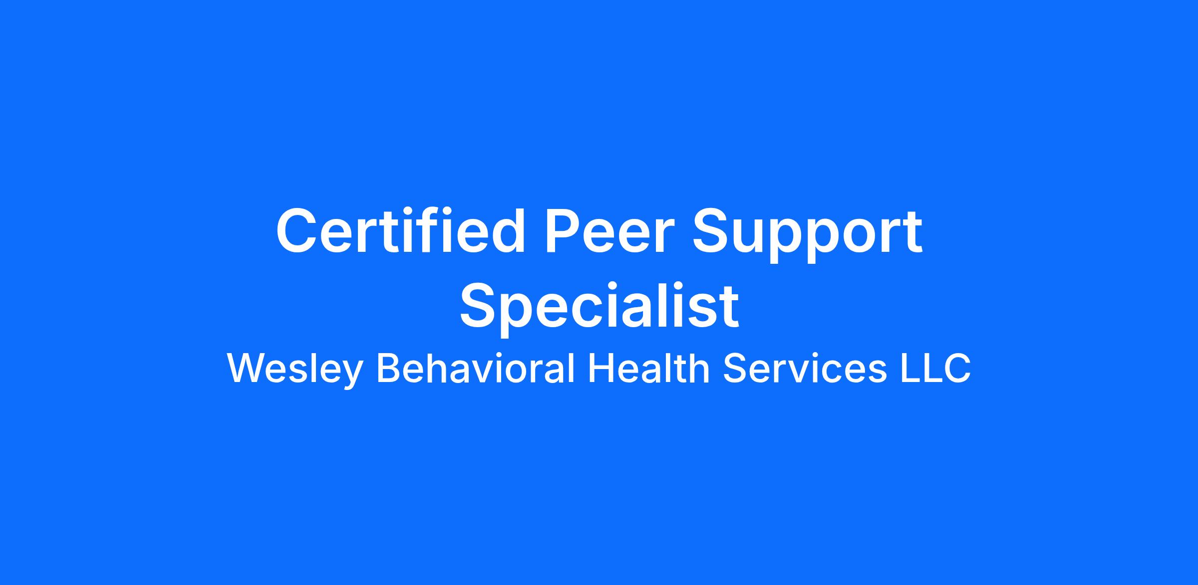 Wesley Behavioral Health Services is seeking a passionate and dependable Certified Peer Support Specialist (CPSS) to join our community-based team. In this role, you’ll use your lived experience with mental health or substance use recovery to support individuals on their own recovery journeys.