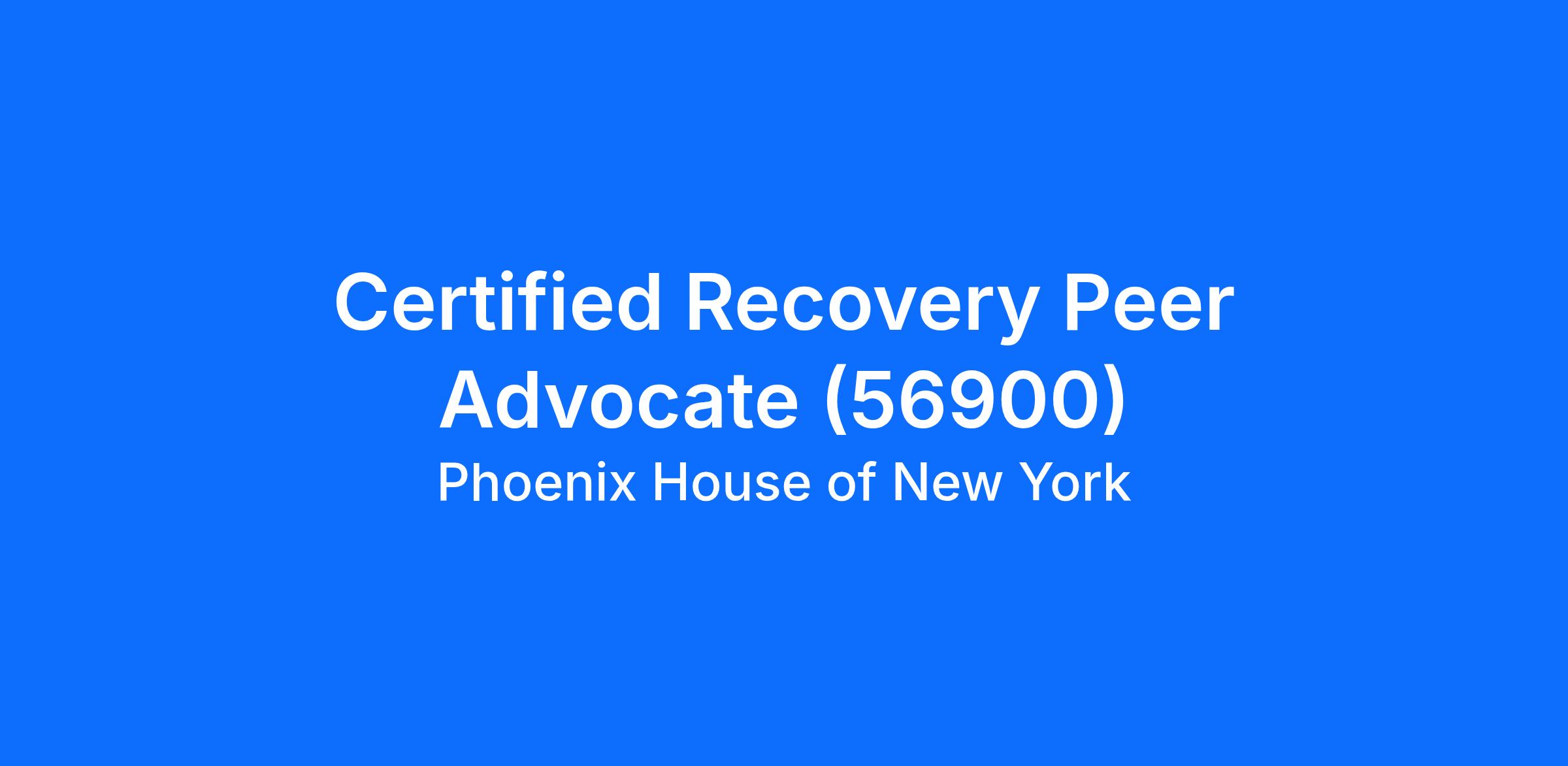 - Recovery Peer Advocate Certification (CRPA) in good standing