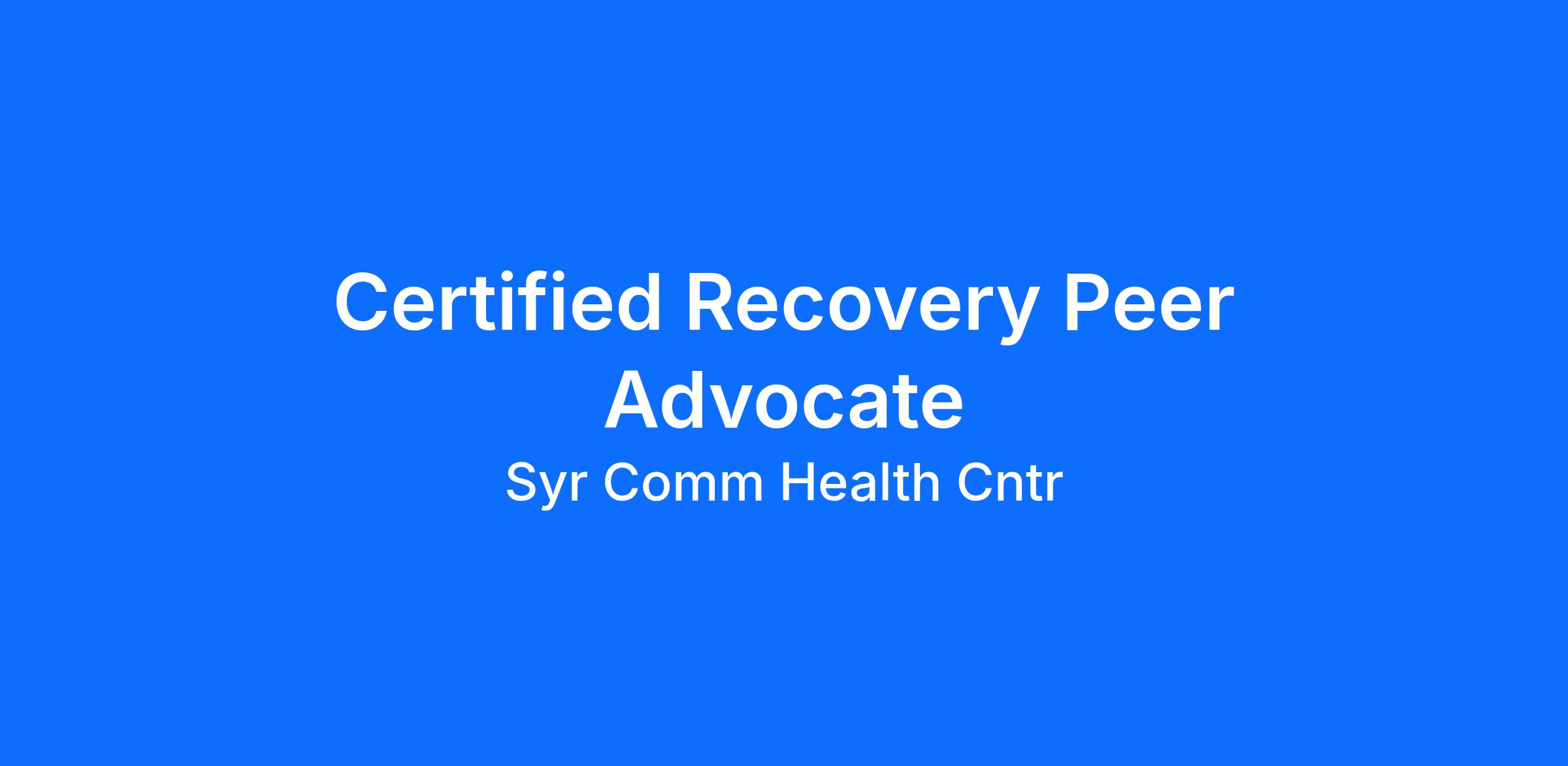 Required education/training and NYS Certification as a Certified Recovery Peer Advocate (CRPA). Will consider Certified Recovery Peer Advocate Provisional certification (CRPA-P), with a defined plan/timeline to obtain full certification. Must complete NYS OASAS background clearance. In addition to the required certification, at least 1 year experience working in an outpatient substance use disorder treatment program and externally providing outreach to patients with substance use disorders utilizing patient centered and evidence-based practices is preferred.