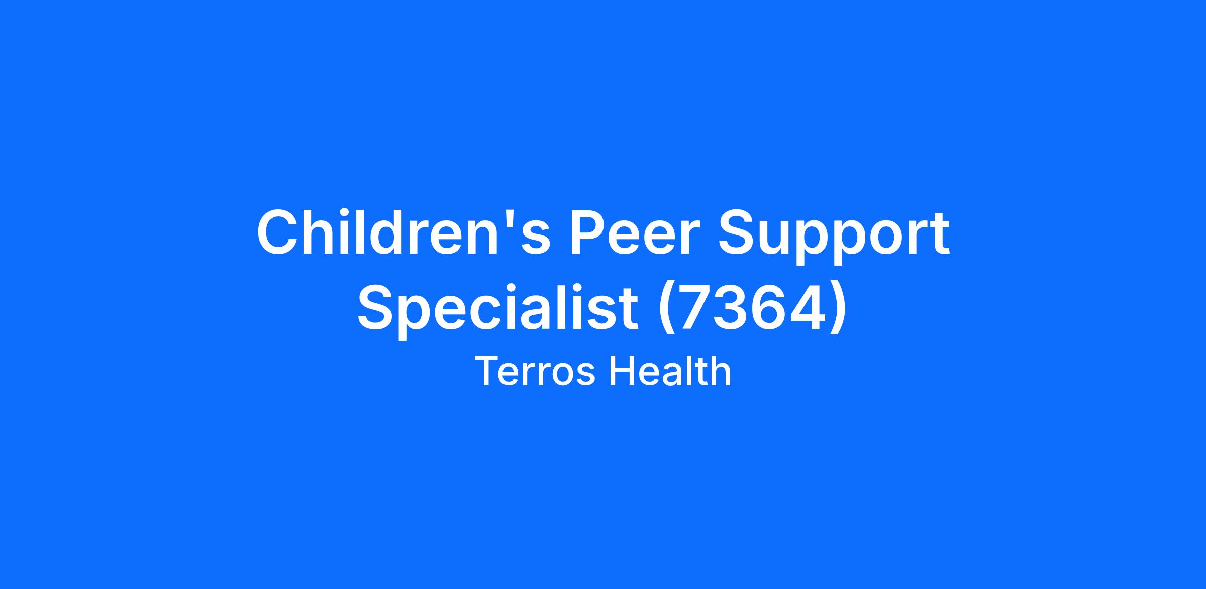 DescriptionTerros Health is pleased to share an exciting and rewarding opportunity for a Children's Peer Support Specialist working at our Stapley Health Center location.