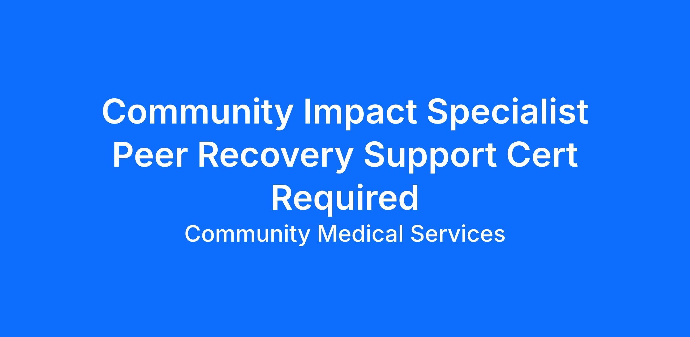 Community Medical Services (CMS) is hiring a Community Impact Specialist to assist patients recovering from addictions to opioids and other illicit substances. Every day you will use your experience in substance abuse rehabilitation and opioid treatment programs to foster relationships with community partners, including community coalitions, health homes, sister agencies, specialty providers, local hospitals, clinics, law enforcement, and fire and EMT services.