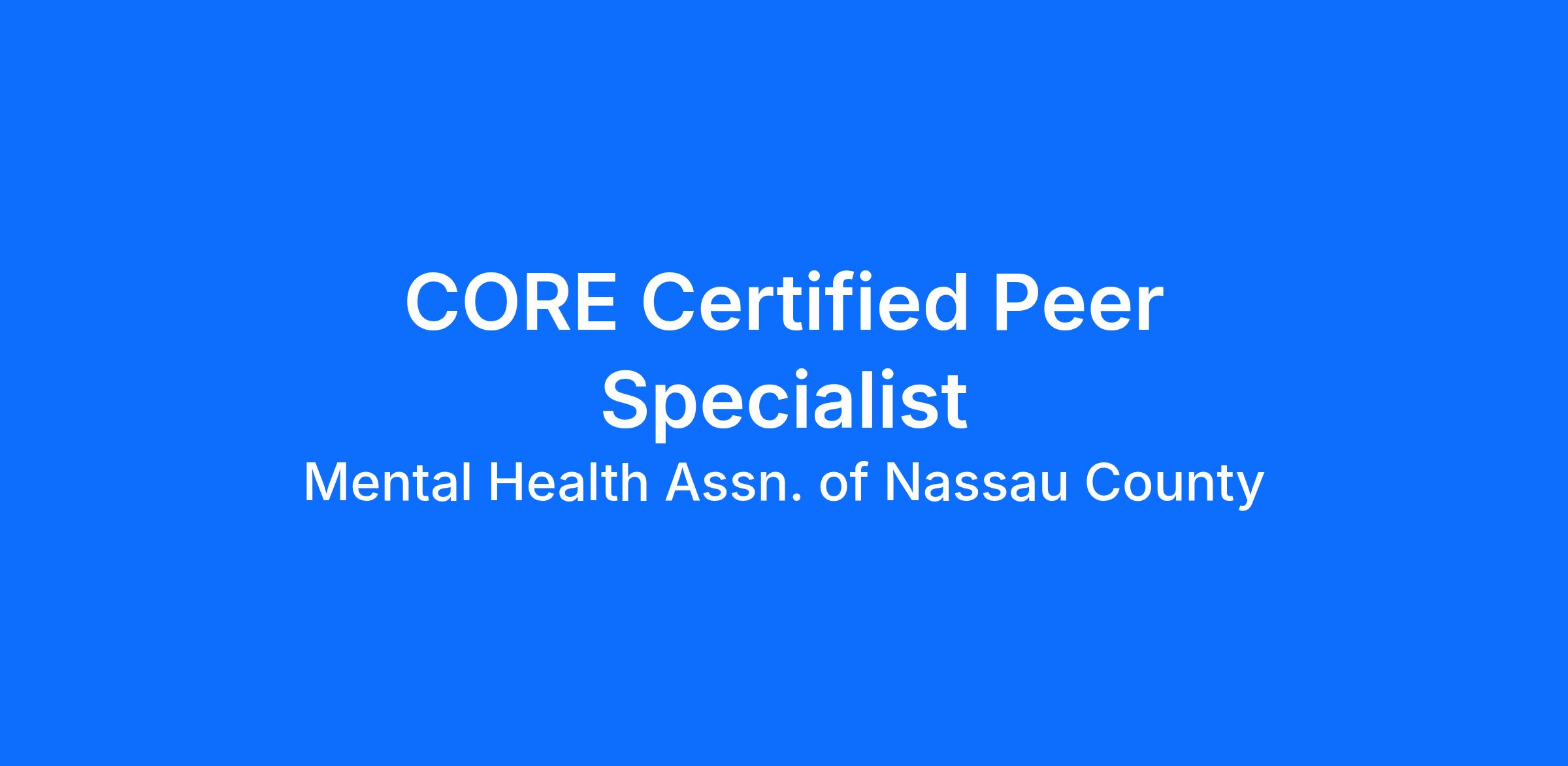 Mental Health Association of Nassau County (MHANC) is a not-for-profit membership organization dedicated to improving mental health in our community through advocacy, education, program development, and the delivery of direct services. Our organization is looking for a motivated individual with a calling to help adults with mental illness by becoming a CORE Peer Specialist.