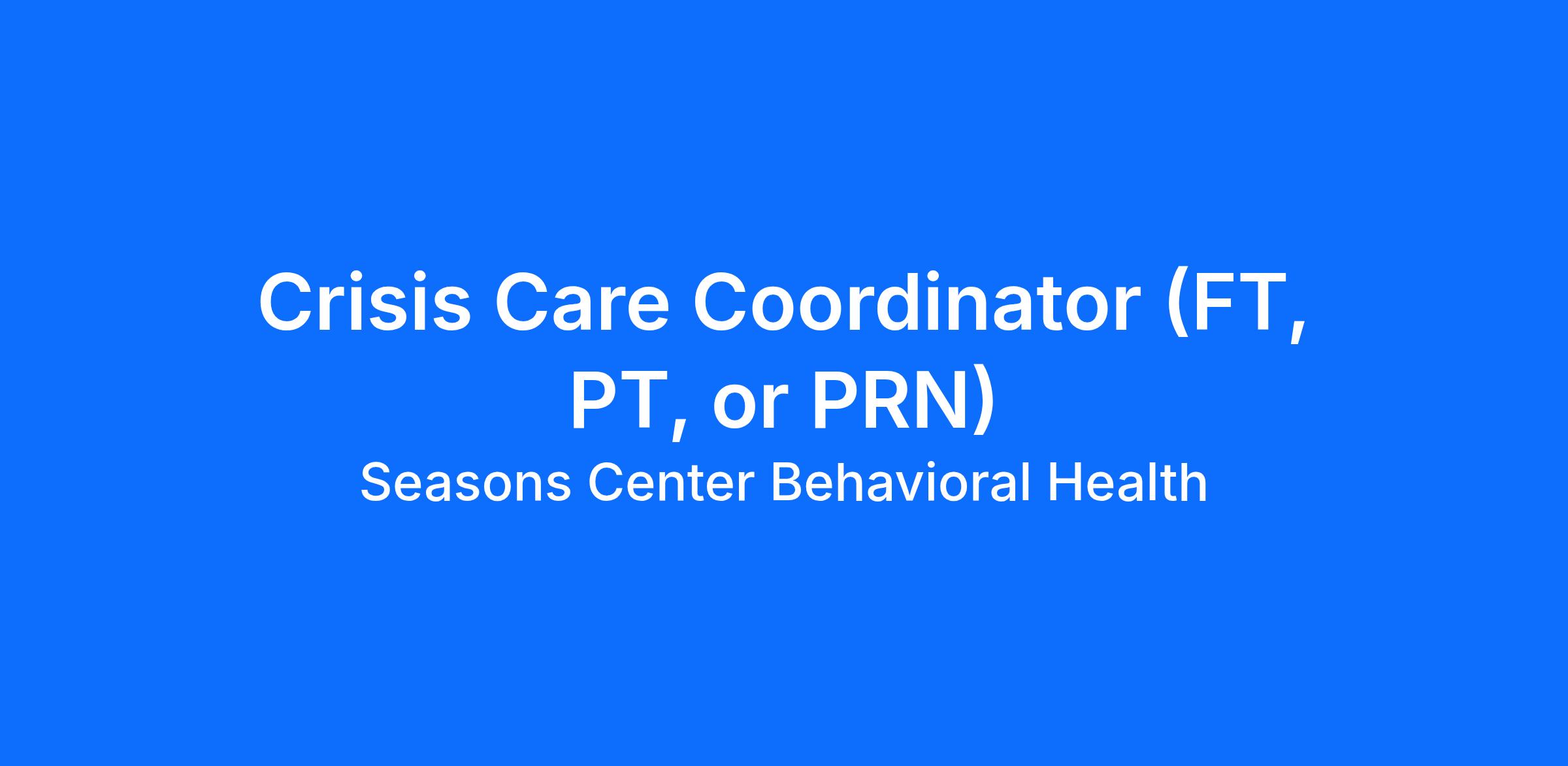 We are currently seeking Crisis Care Coordinators to provide crisis services over-the-phone, and in-office at our new Crisis Stabilization Center, Alex’s Place. Crisis Care Coordinators provide short-term crisis intervention to youth, families, and adults experiencing an emotional, behavioral, or psychiatric crisis. Our team works closely with law enforcement, schools, and other medical providers to stabilize acute or crisis situations and connect individuals with continuing mental and behavioral health services based on their needs, strengths, and preferences.