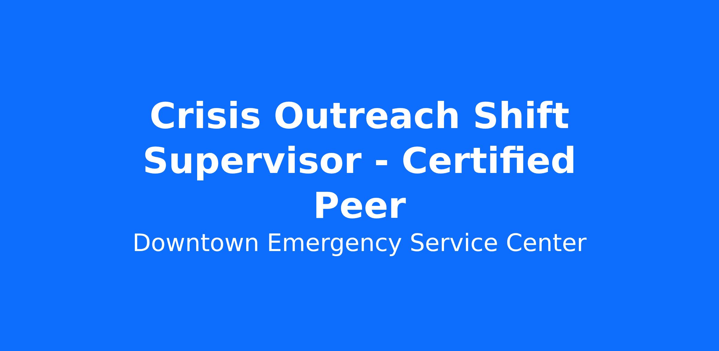 Each Crisis Outreach Shift Supervisor is responsible for ensuring their team’s timely, effective, and coordinated response into the field as they are dispatched and deployed by Crisis Connections. Shift Supervisors work alongside the staff they supervise providing real-time, on the ground supervision, coaching and guidance for how to resolve crisis situations their teams are responding to in the community. Crisis Outreach Shift Supervisors have the responsibility of implementing the systems created by the MRRCT program leadership related to proper documentation standards, implementation and adherence to DESC policies and procedures, supervision and performance management of their team, and ensuring their team members participate in all relevant training and on-going education necessary.