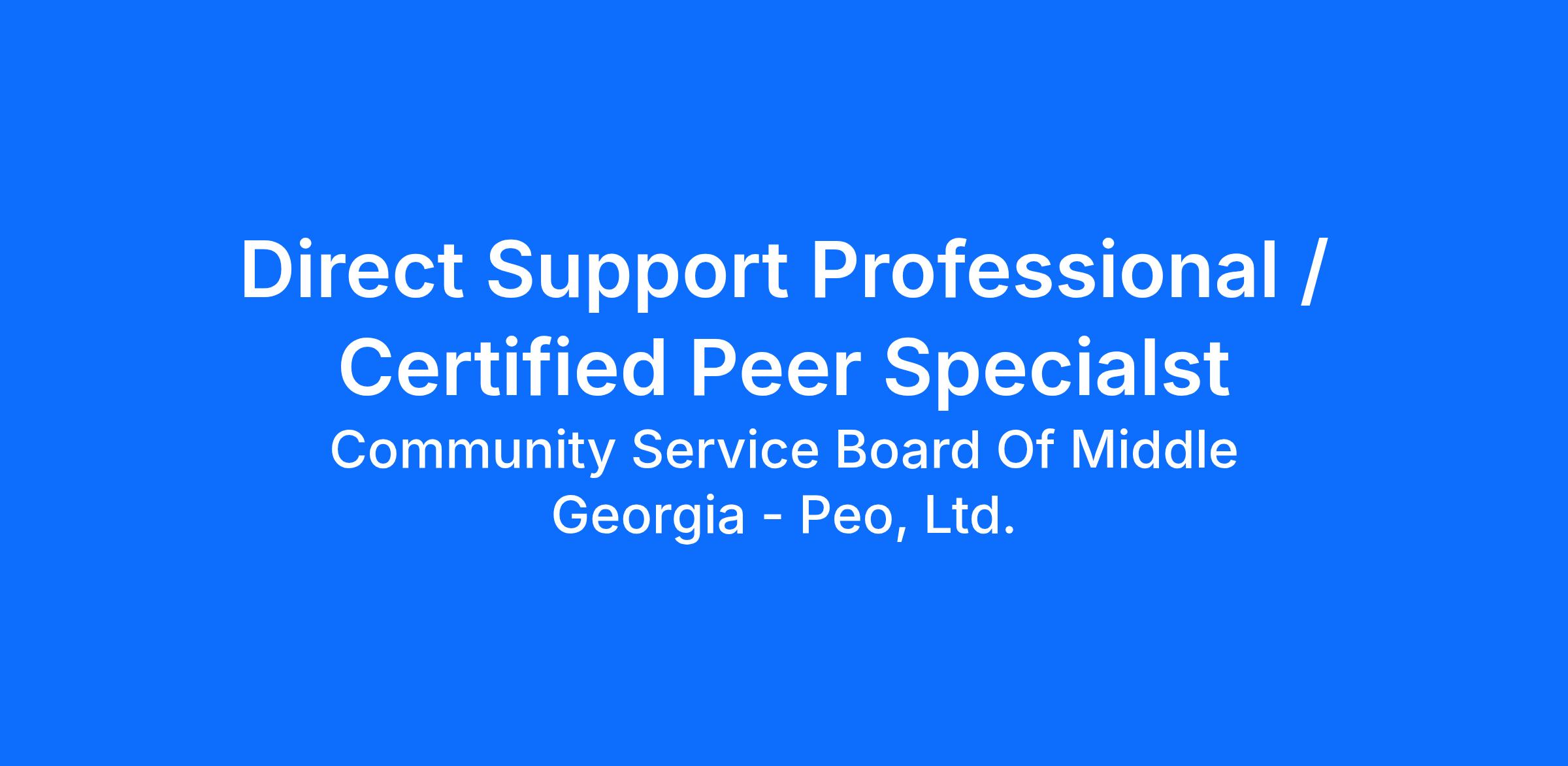 The Community Service Board of Middle Georgia's SPIRIT program is seeking a qualified individual to serve as our next Direct Support Professional/Certified Peer specialist. This person will be responsible for providing care and assistance to adults with diagnosed intellectual and developmental disabilities, ensuring that they have the proper care needed throughout the day and in everyday activities. The selected candidate will also be responsible for keeping up to date progress notes on the individuals they work with, to ensure that the program manager has the proper knowledge to advise families and senior leadership on necessary next steps.