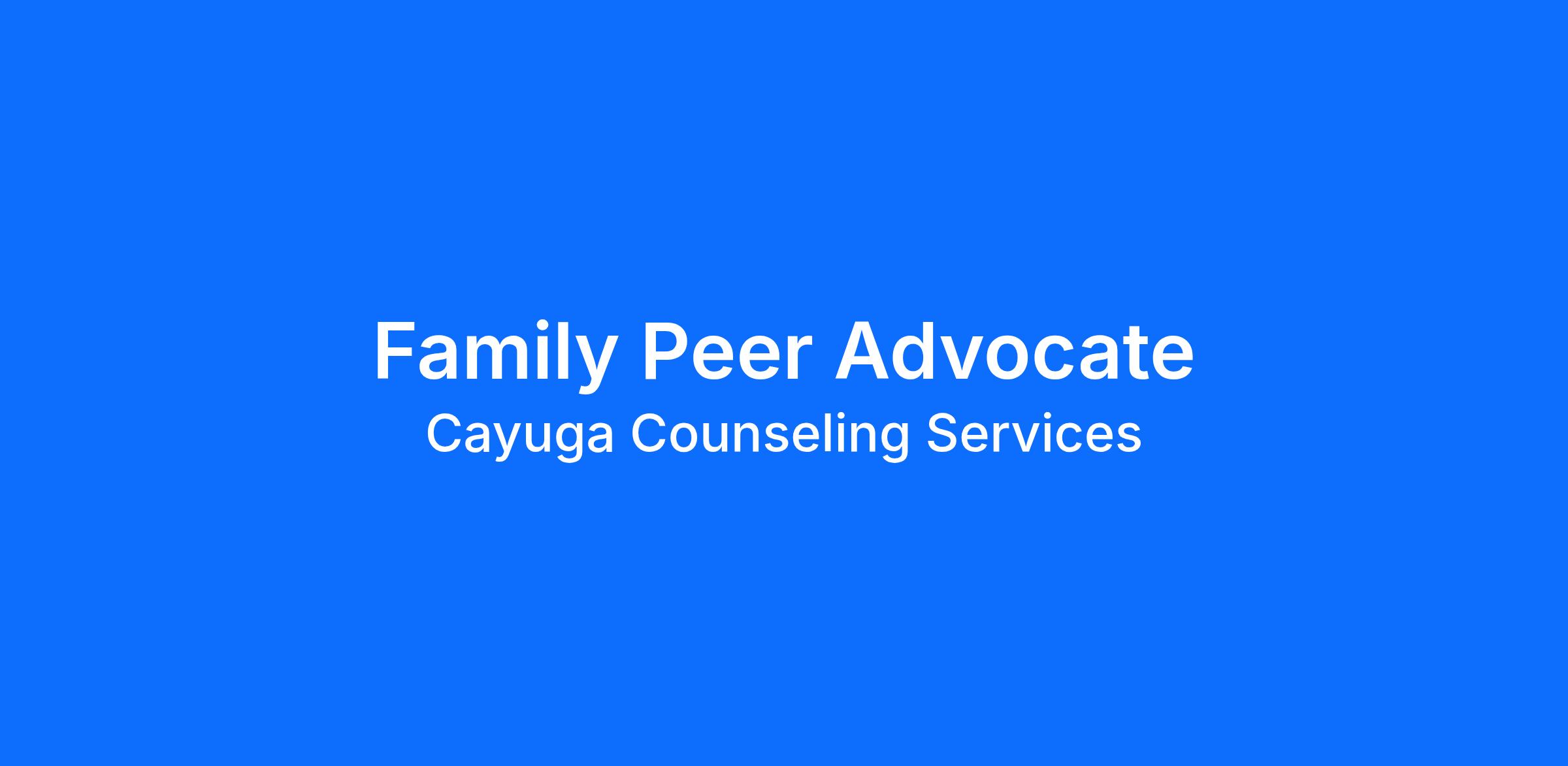 Cayuga Counseling Services, Inc. seeks a Full-time (40 hours/week) Family Peer Advocate who can provide structured, strength - based peer support to families raising children with social, emotional, behavioral, or developmental challenges.