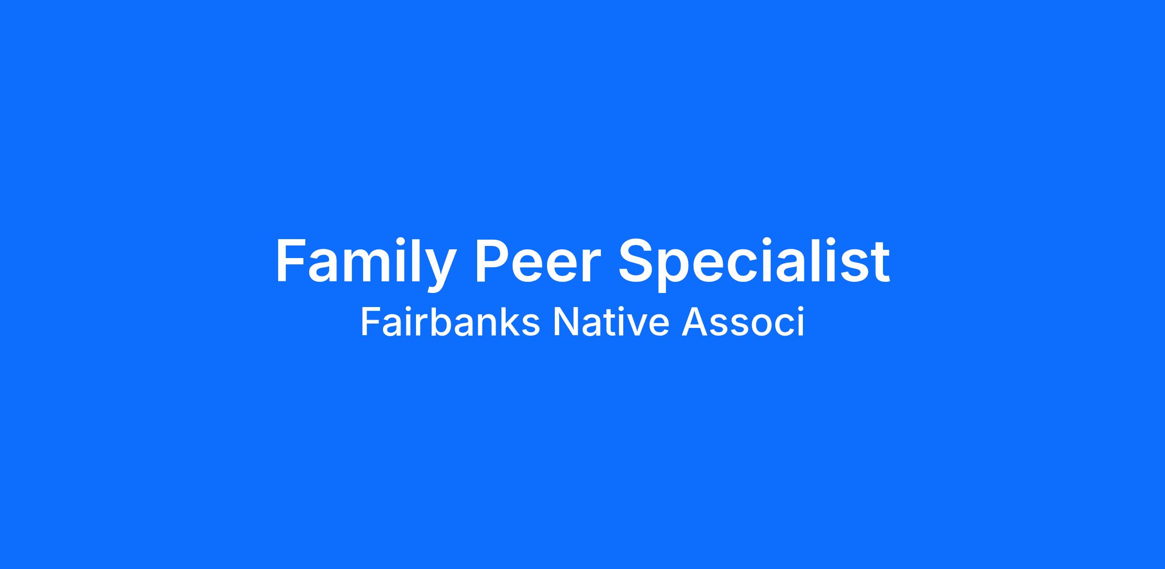<div><div><div><div><p id="isPasted" style='margin:0in;font-size:16px;font-family:"Times New Roman",serif;'><strong><span style='font-family:"Taub Sans";'>Family Peer Specialist</span></strong></p><p style='margin:0in;font-size:16px;font-family:"Times New Roman",serif;'><span style='font-family:"Taub Sans";'>Fairbanks Native Association is a voice for the people of Fairbanks. Our <strong>mission</strong> is to improve the quality of life for individuals and families by promoting justice, healing, and wellness in our community. We have a <strong>vision</strong> of a unified, healthy, and empowered Native community that embraces all cultures. </span></p><p style='margin:0in;font-size:16px;font-family:"Times New Roman",serif;'><span style='font-family:"Taub Sans";'> </span></p><p style='margin:0in;font-size:16px;font-family:"Times New Roman",serif;'><span style='font-family:"Taub Sans";'>Because employees are our number one asset, Fairbanks Native Association is pleased to offer a grea...