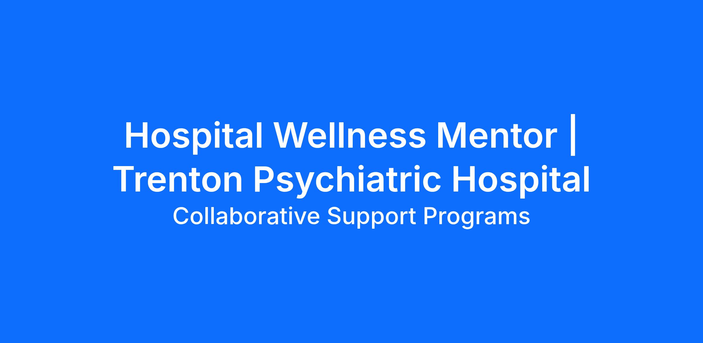 CSPNJ, a mental health nonprofit agency, has a part-time Hospital Wellness Mentor opening based on the grounds of Trenton Psychiatric Hospital. The Wellness Mentor delivers individual and group peer support, socialization and recreational activities at the wellness center located on the grounds of the State Psychiatric Hospital. Under the supervision of the center Hospital Manager, works with other wellness provider(s) to run day-to-day operations of the wellness center, helps coordinate with hospital staff as needed and assists with community relations and other related activities.