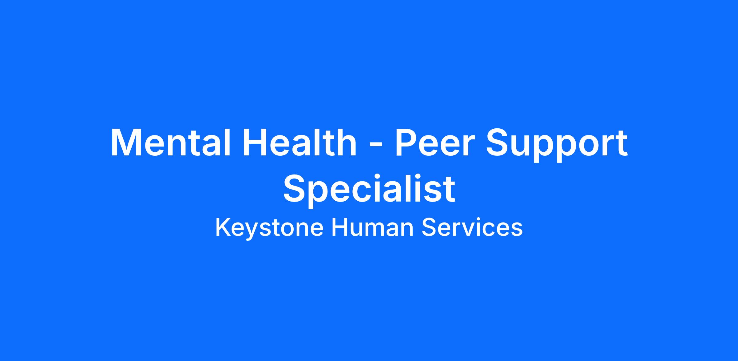 Keystone Mental Health Services is currently seeking a Peer Support Specialist to join our team in providing individualized, person-directed support in the area of mental health. Our work focuses on inclusion and building communities where everyone has the opportunity to thrive and fully participate in everything society has to offer.