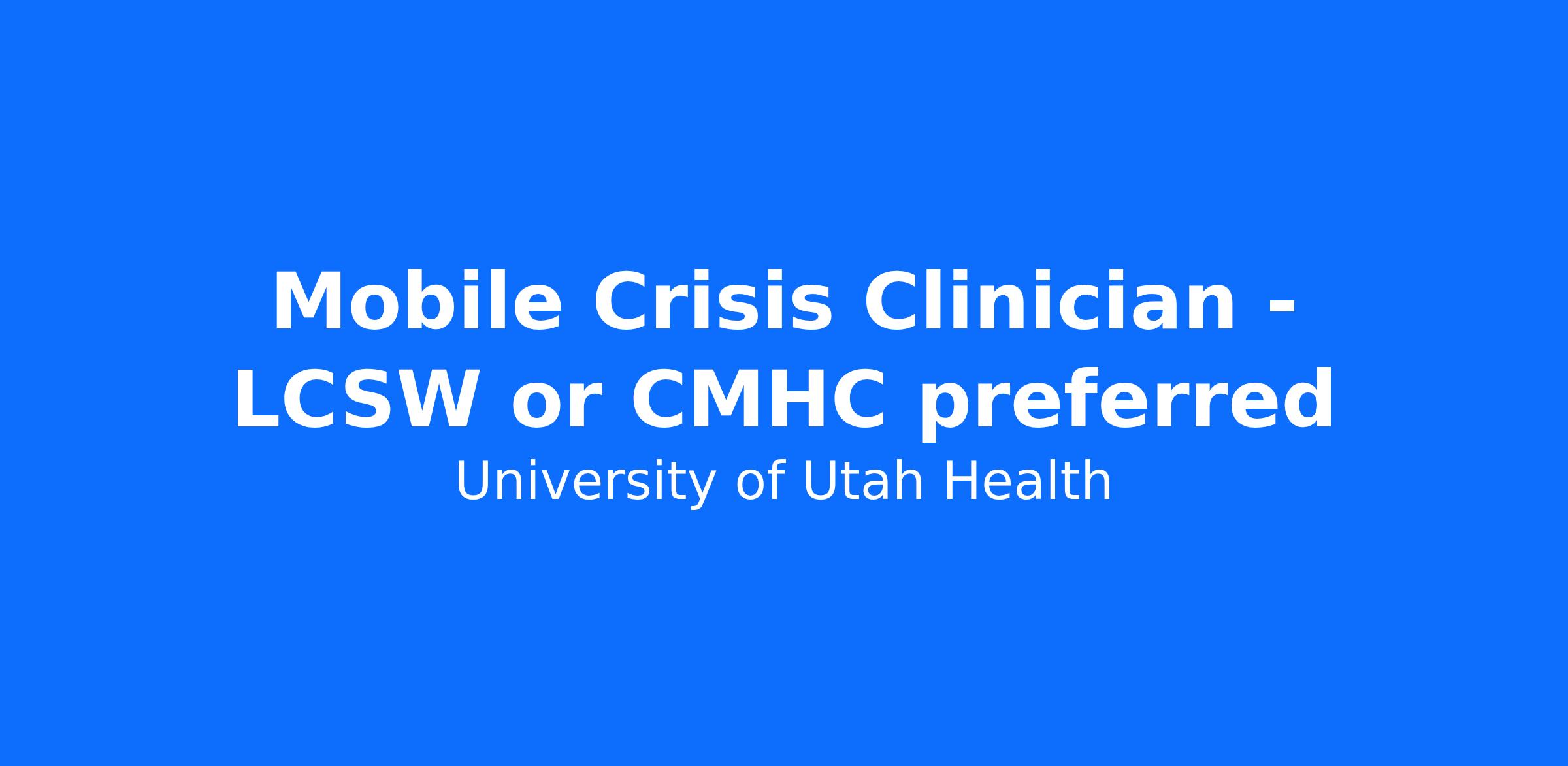 Mental health first responders serving Salt Lake County residents for on-demand, in-person crisis intervention, de-escalation, suicide risk assessment, and connection to behavioral health resources. Mobile Crisis Outreach Team (MCOT) clinicians engage with key community stakeholders such as law enforcement, fire/EMS, shelters, businesses, and private citizens. Receive dispatch referrals for in-person response from the Utah Crisis Line (988) and directly from 911 partners for immediate deployment. Operate in teams of 2 for community-based safety and required billing purposes. Act as the behavioral health first responder on scene (and often only responder on scene) with the goal of avoiding law enforcement/EMS response to behavioral health emergencies unless there is a physical safety concern present on scene. This position is partnered with and offers on-scene supervision to a peer specialist (Certified Peer Support Specialist, Family Peer Support Specialist, or bachelor’s level Certified Crisis Worker).