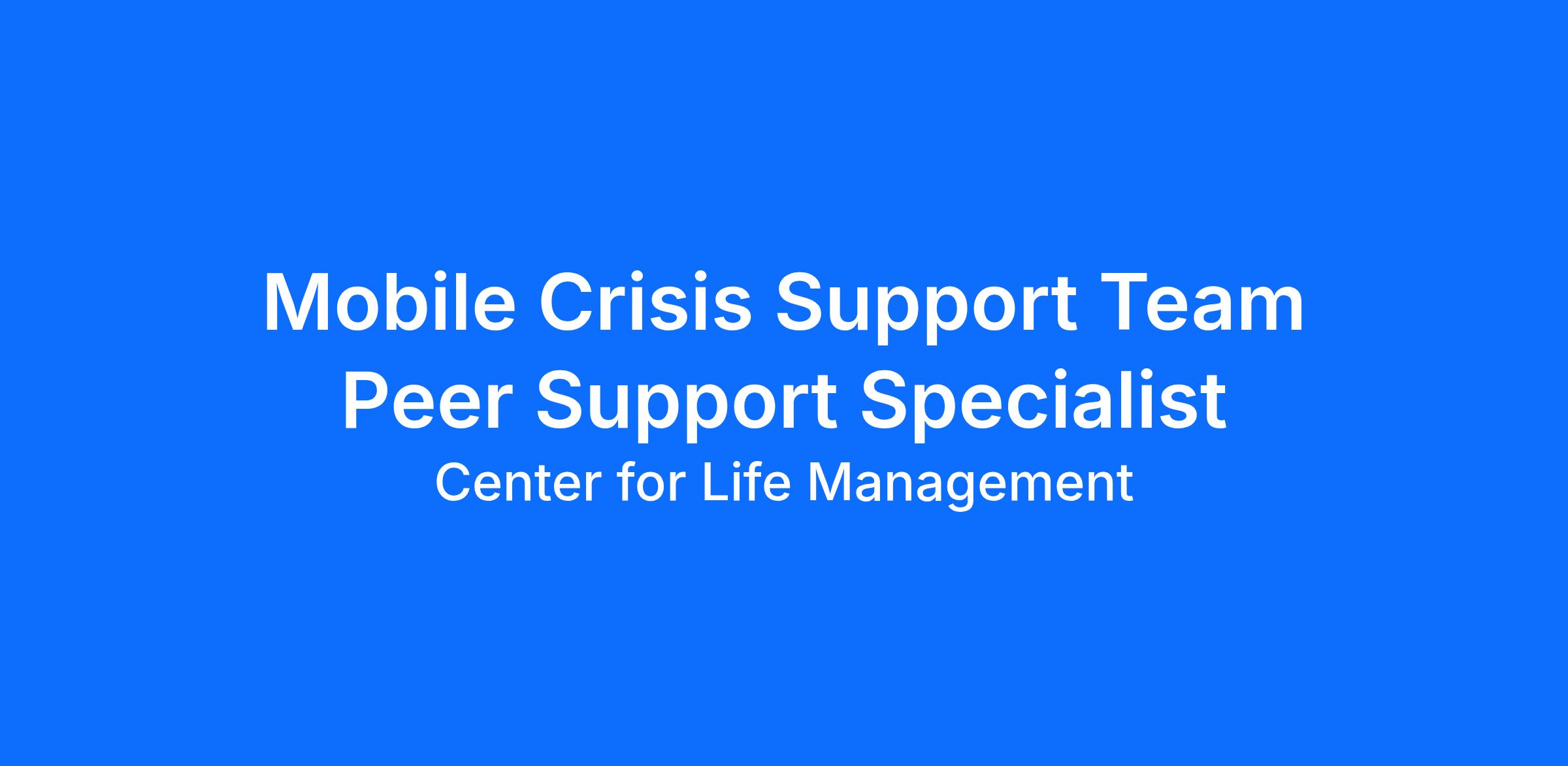 Center for Life Management’s Acute Care Department provides telephone crisis assessment, family consultation, emergency assessment, regional rapid response, crisis stabilization, and hospital coordination for admittance and discharge, as medically necessary, to youth, adults and elders. Our services are specifically aimed at diverting individuals from emergency room care, unnecessary hospitalizations, and incarceration by collaborating with first responders, health care providers and community-based agencies to stabilize a psychiatric crisis and initiate immediate treatment. The Acute Care Services Crisis Stabilization Peer Support Specialist on this multi-disciplinary team will transform our mental health system and build strong connections with our clients through skillful use of lived experience. They will be cross trained in Mobile Crisis Rapid Response in event of team coverage. This is a full time, 36 hour per week position with a schedule of Mondays and Tuesdays 9:00 a.m. - 9:00 p.m. and Fridays 7:00 a.m. - 7:00 p.m.
