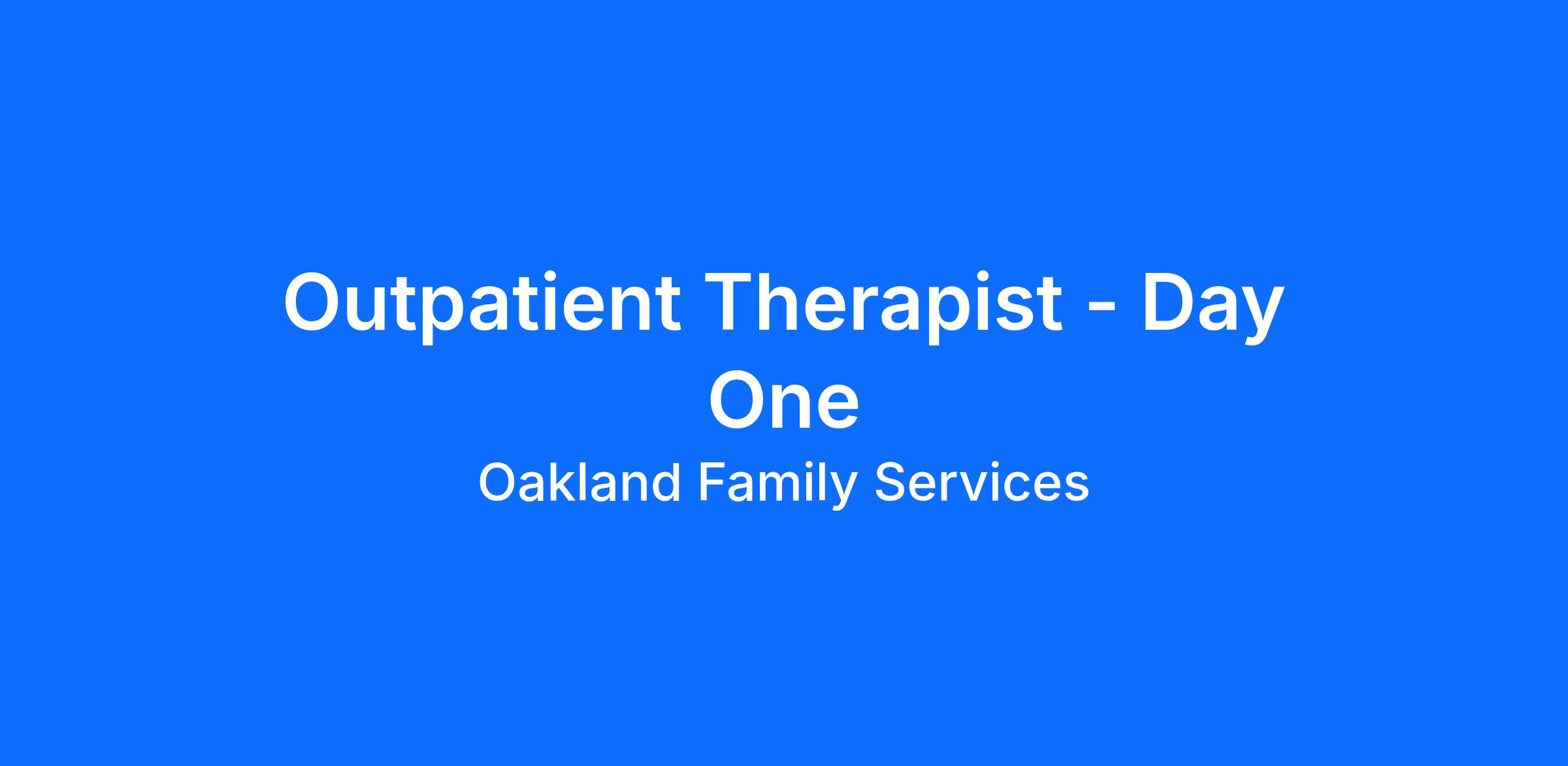An Outpatient Therapist in the Day One program provides treatment services and case management to both youth (beginning at age 4) and adults, in the office and/or via tele-health. Treatment services include assessment, diagnosis (mental health and/or substance use), treatment planning and individual/family/group therapy. An Outpatient Therapist actively coordinates cases with the treatment team that could include psychiatric staff and probation officers. An Outpatient Therapist receives weekly individual supervision as well as group supervision on specialized topics to assist in moving towards full licensure, if needed. An Outpatient Therapist will also have the opportunity to participate in professional development activities on a variety of clinical topics including evidence-based practices and interventions, based on caseload need and therapist interest.