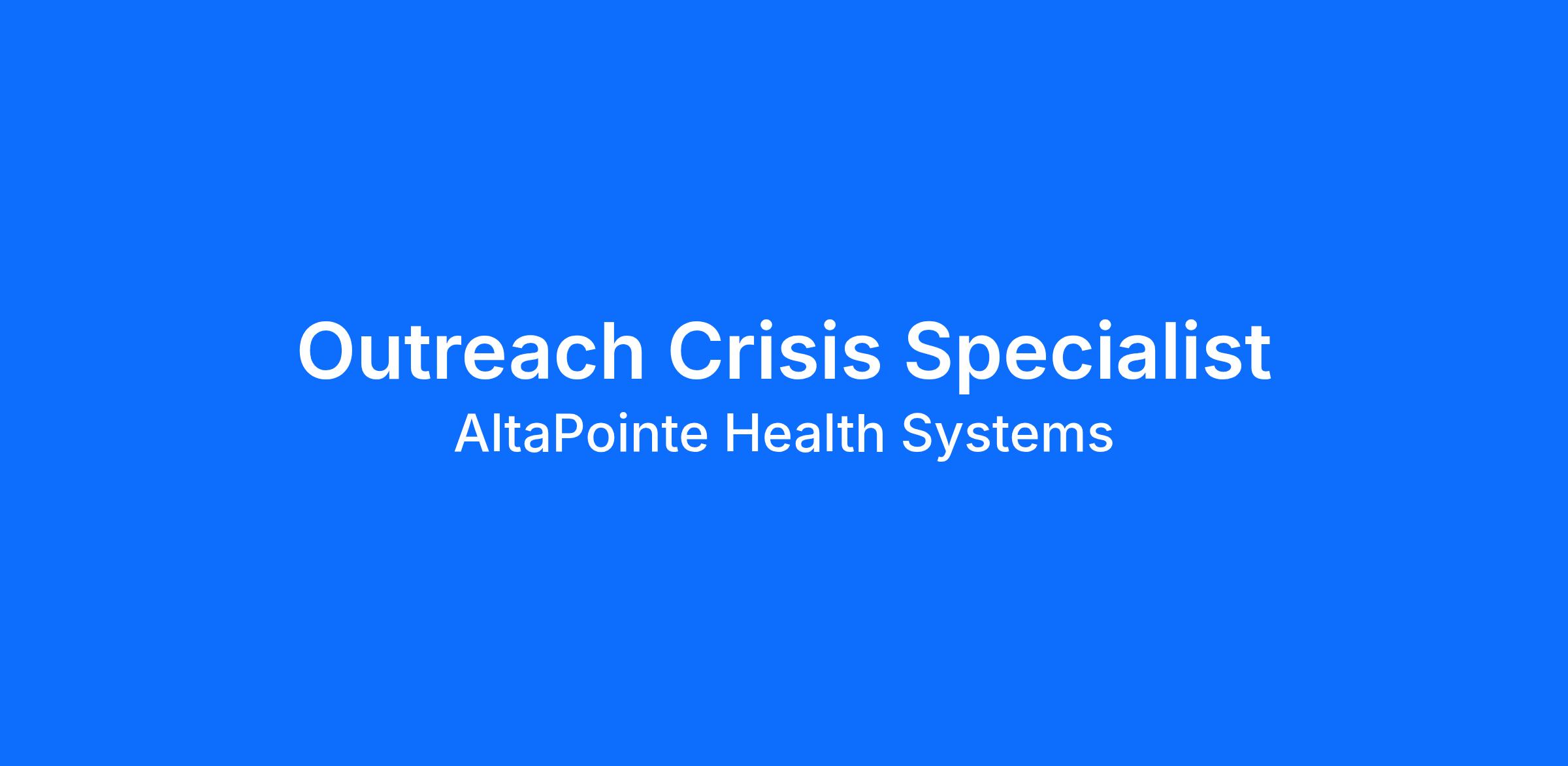 Outreach Specialists are responsible for responding to crisis calls, scheduling and attending face to face visits following calls to CarePointe or the Outreach Liaison, educating families on crisis de-escalation and safety plans, and coordinating care with appropriate AltaPointe programs.