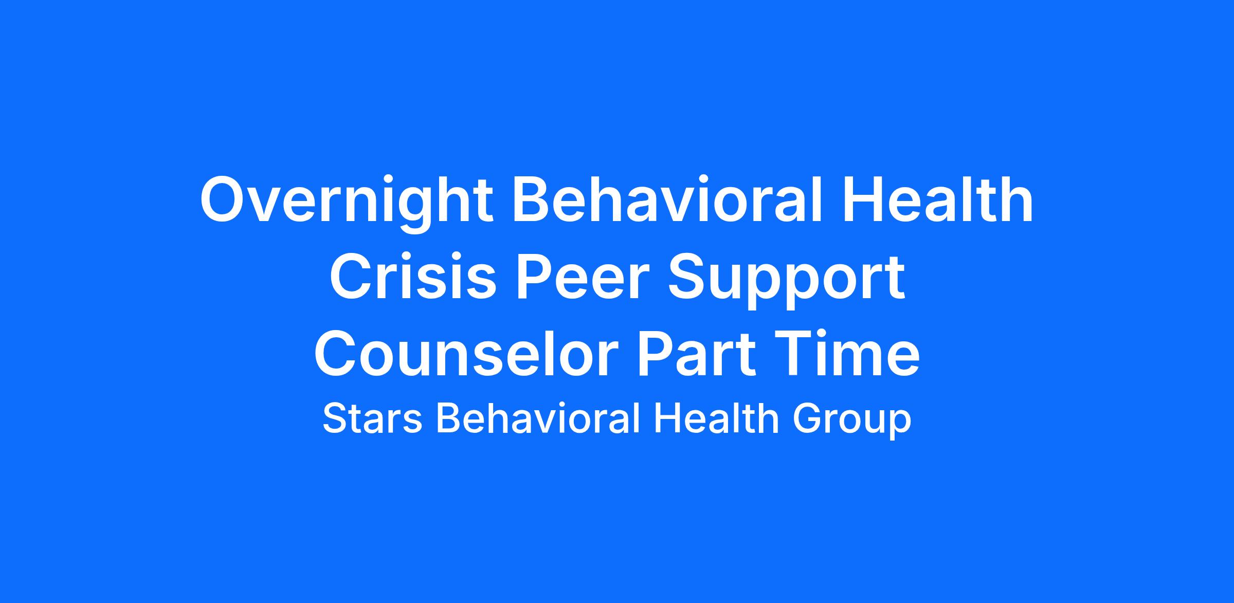 Overnight Behavioral Health Crisis Peer Support Counselor Part TimeDivision/Program: