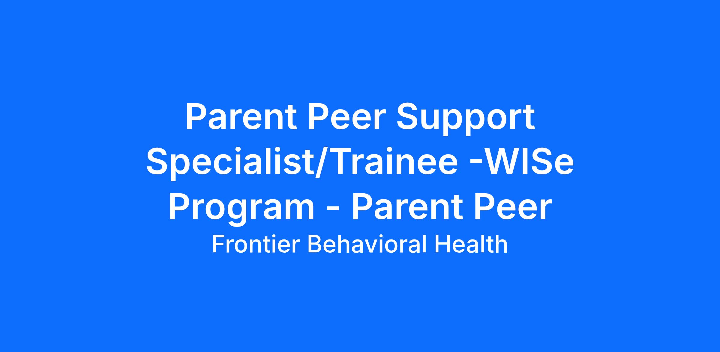 The WISe (Wrap Around with Intensive Services) Parent peer support specialist is specially trained to work as a part of a wrap around team providing services to WISe enrolled youth and families in their home and community within all phases and activities of WISe.