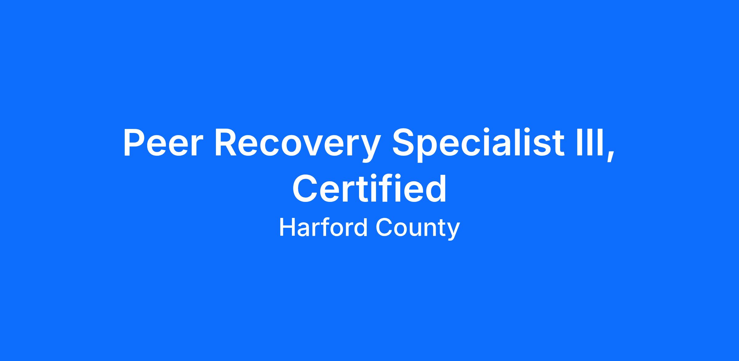 1. Candidates for positions in this classification must possess a current certification as a Peer Recovery Specialist within 12 months from date of hire from the Maryland Addictions Professional Certification Board (MAPCB) located at 10807 Falls Rd., #1376, Brooklandville, MD 21022.