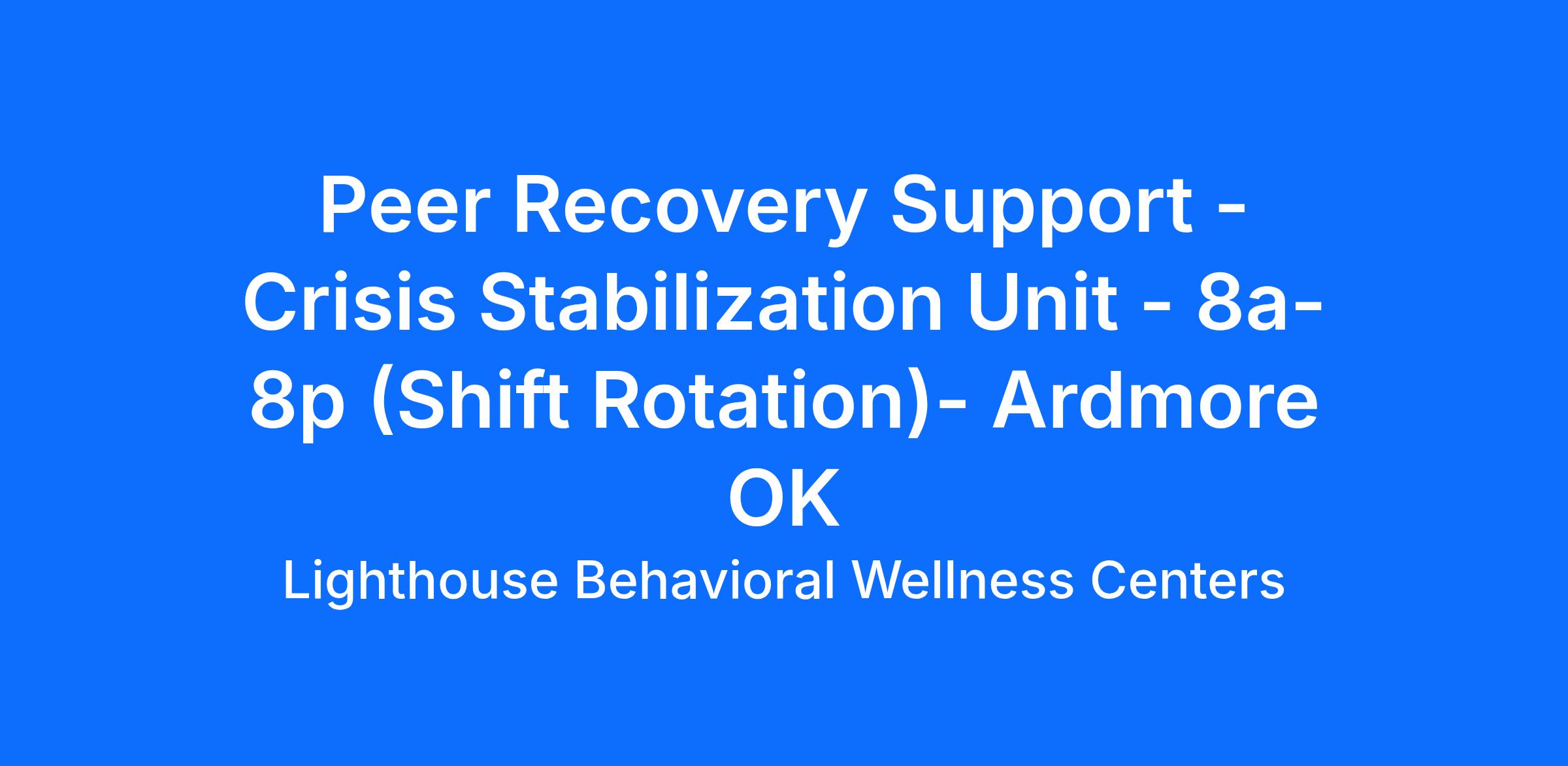 Under immediate to general supervision, provides recovery support services to individuals and groups in various settings including but not limited to the Crisis Stabilization Unit, Urgent Recovery Centers, 9-8-8 response calls and other crisis intervention scenarios. This position is supervised by the Lead Care Coordinator of CSU and/or the Manager of the URC.