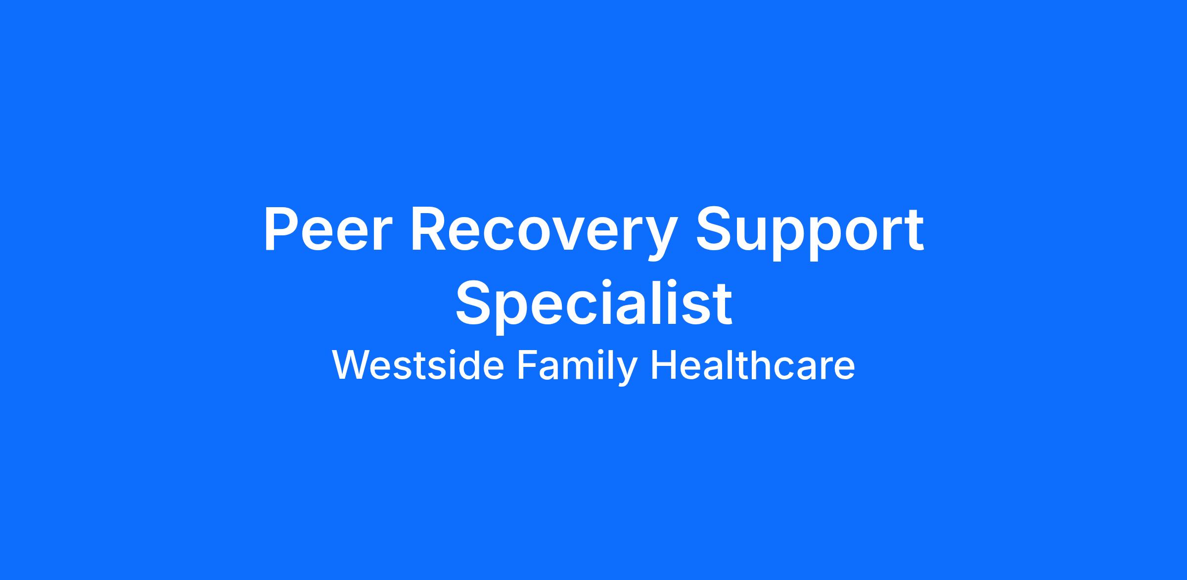 Westside Family Healthcare is a nonprofit organization that provides high quality primary medical care without regard to ability to pay. The Peer Recovery Support Specialist is a core member of the collaborative care team who coordinates the peer recovery and support services for patients with substance use and mental health problems. Service provision will focus on working with patients and families to enhance their recovery. The Peer Recovery Support Specialist will mentor and help patients in recovery by providing person-centered support, guidance, hope, encouragement, education, care navigation, and advocacy to address barriers to care, including social determinants of health. The Peer Recovery Support Specialist will work closely with the primary care and behavioral health teams to support patients.