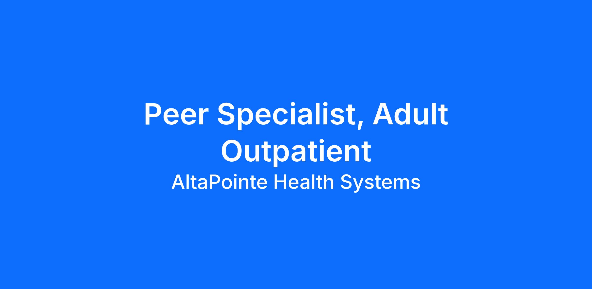Peer Specialist, Adult Outpatient