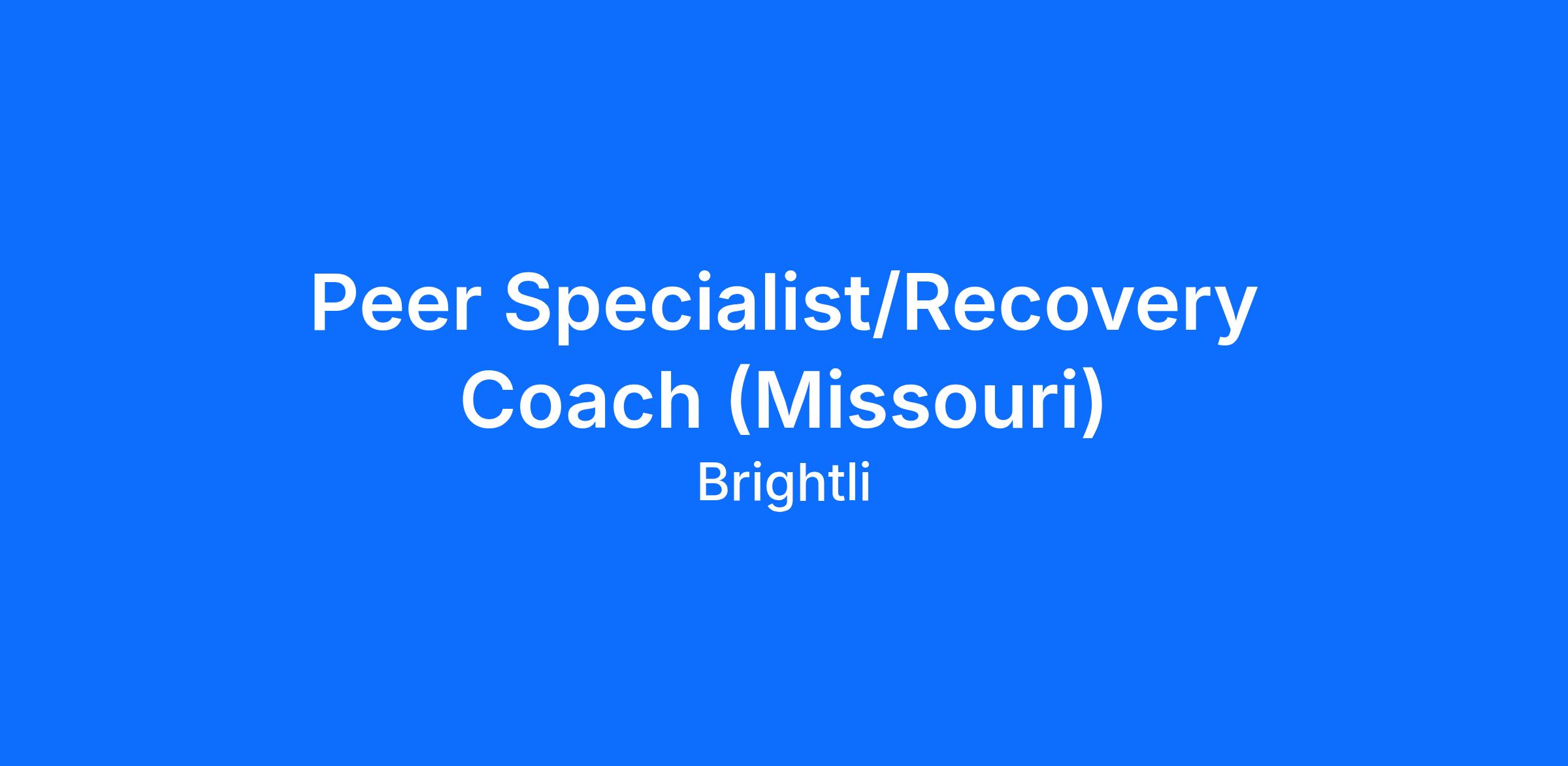 Job Title: Peer Specialist/Recovery Coach