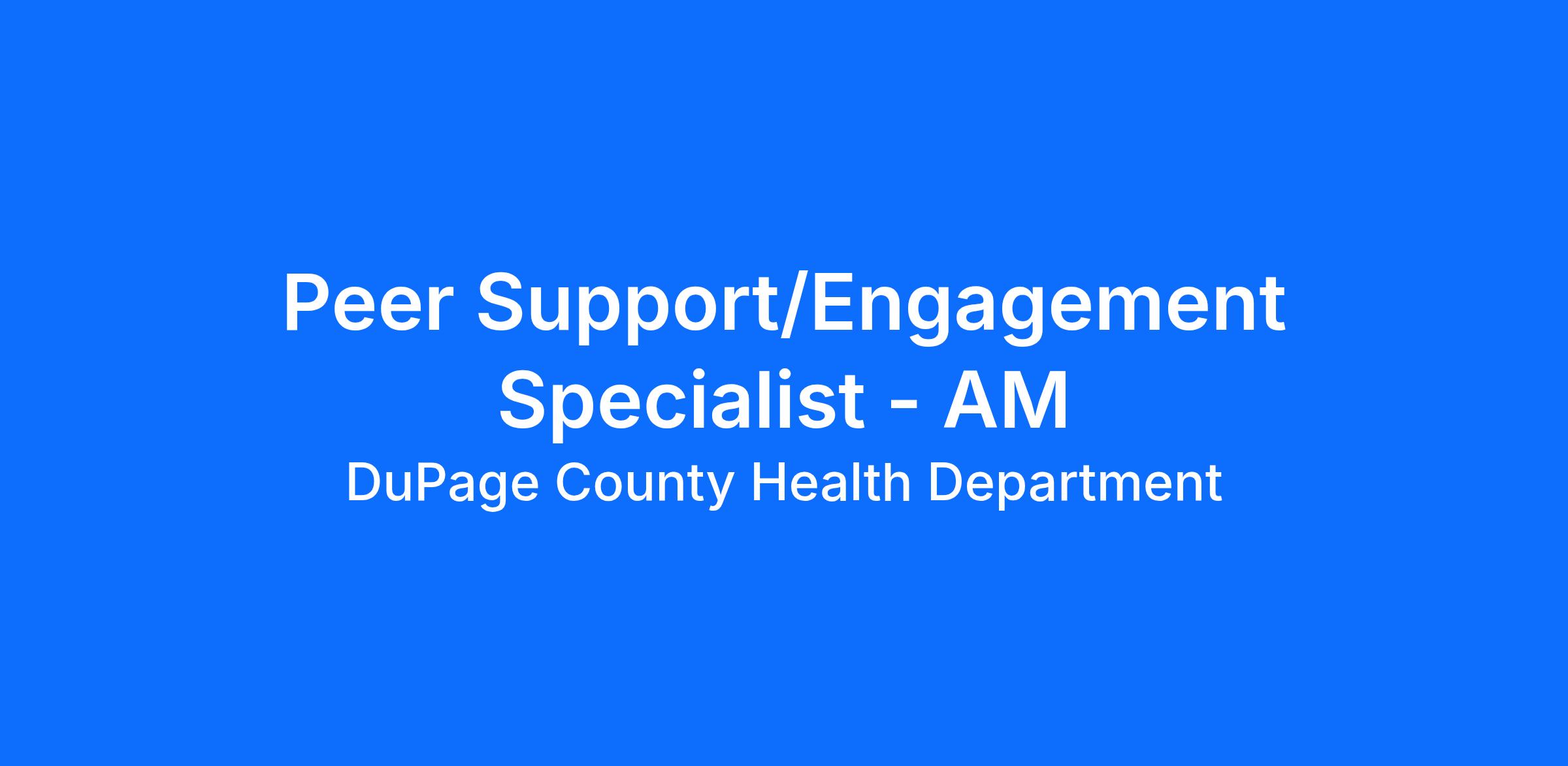 We are looking for a new team member to join us working as a Peer Support Recovery/Engagement Specialist, on our Mobile Crisis Response team, Thursday to Sunday from 7:00 am to 5:00 pm. With the opening of the Crisis Recovery Center in September 2025, the DuPage County Health Department achieved a milestone in building the ideal behavioral health crisis system for our community. Our new Crisis Recovery Center provides 24/7 crisis mental health services to county residents experiencing psychiatric crises or needing support for mental illness symptoms or substance abuse withdrawal. Our team delivers top-notch care with rapid response times. Click Dupage County CRC to learn more about the Crisis Recovery Center.