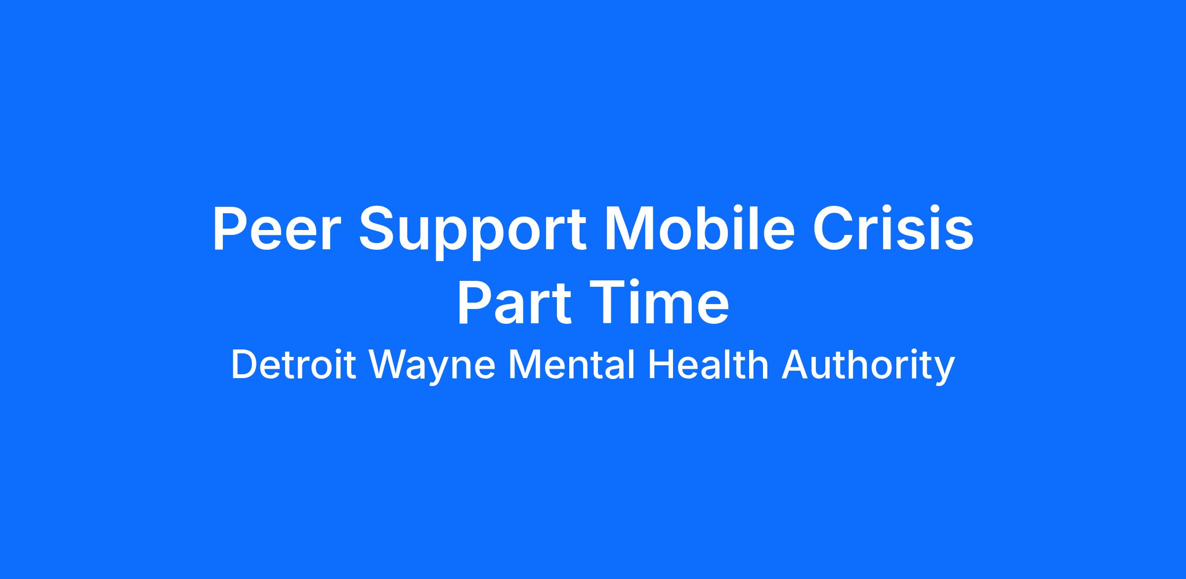 The Detroit Wayne Integrated Health Network is an Equal Opportunity Employer