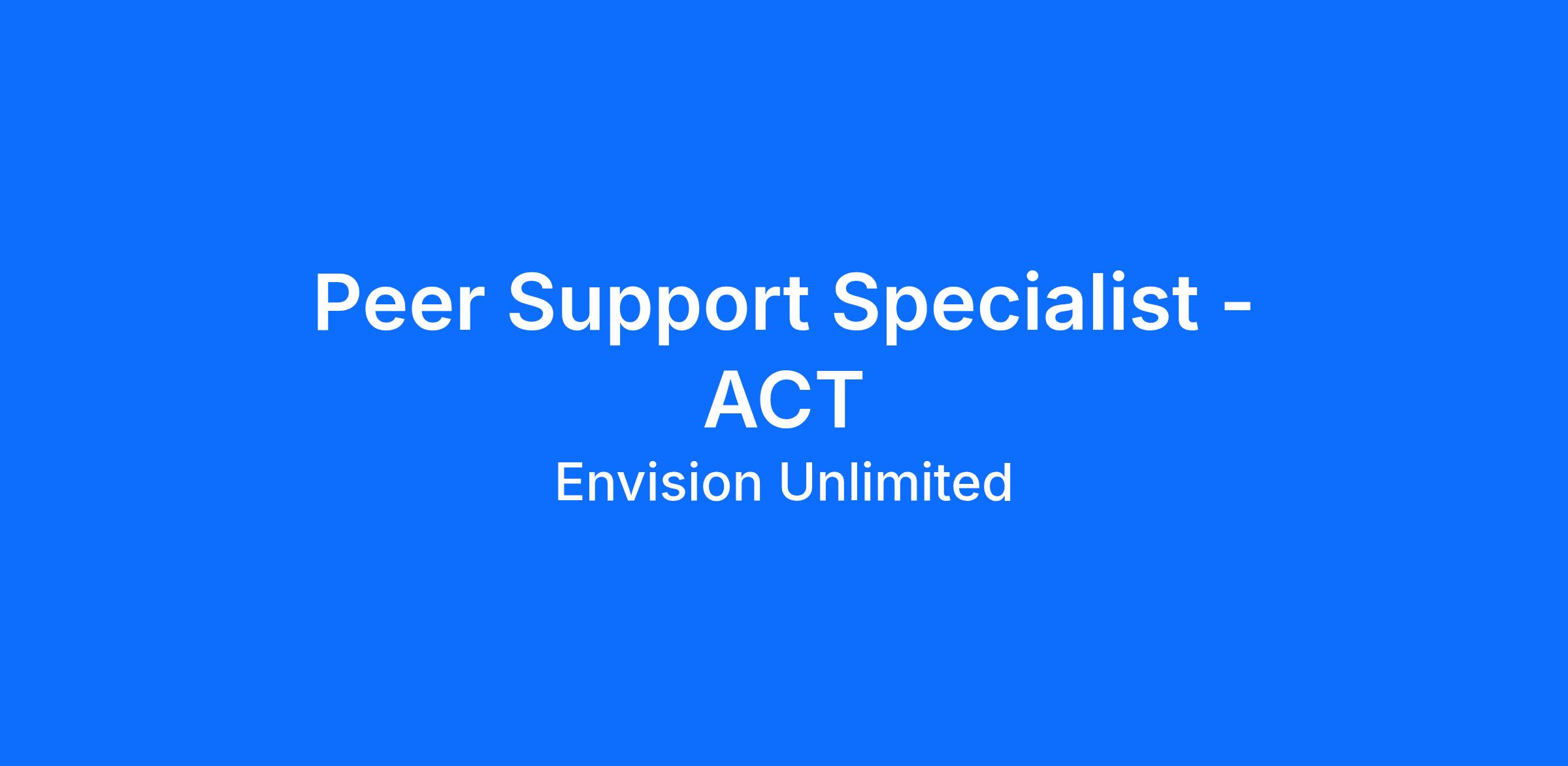 Envision Unlimited is hiring a Certified Recovery Support Specialist (Peer Support) to join our Assertive Community Treatment (ACT) Team. This role is ideal for someone in mental health recovery who wants to support others using their lived experience.