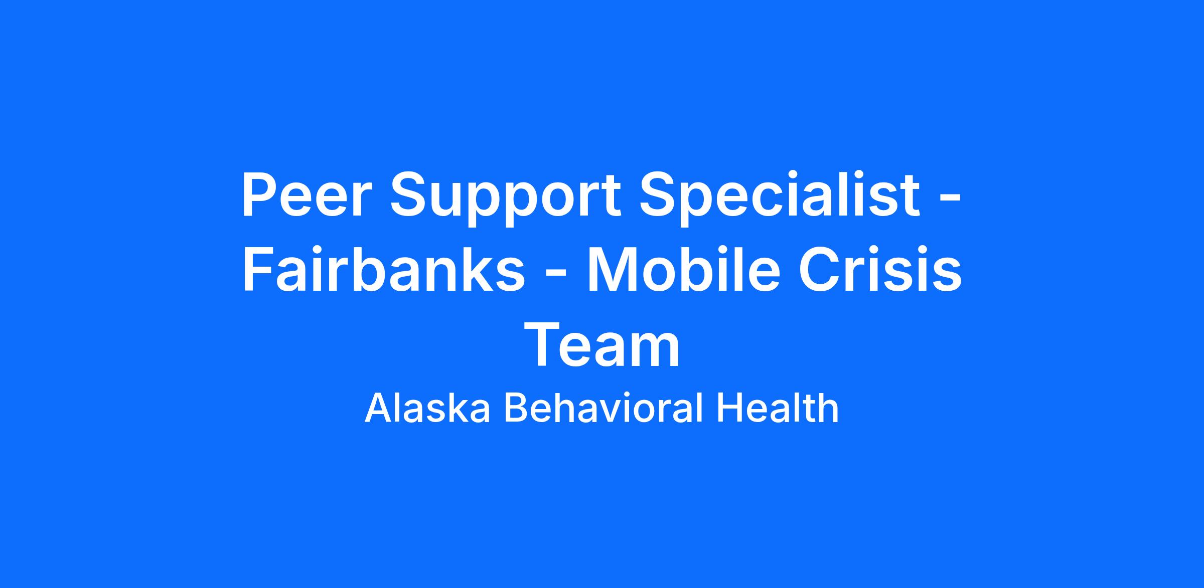 Join our team at Alaska Behavioral Health in Fairbanks, AK, as a Peer Support Specialist for our Mobile Crisis Team (MCT)! If you're passionate about making a difference in people's lives and promoting recovery within the community, this opportunity is for you.