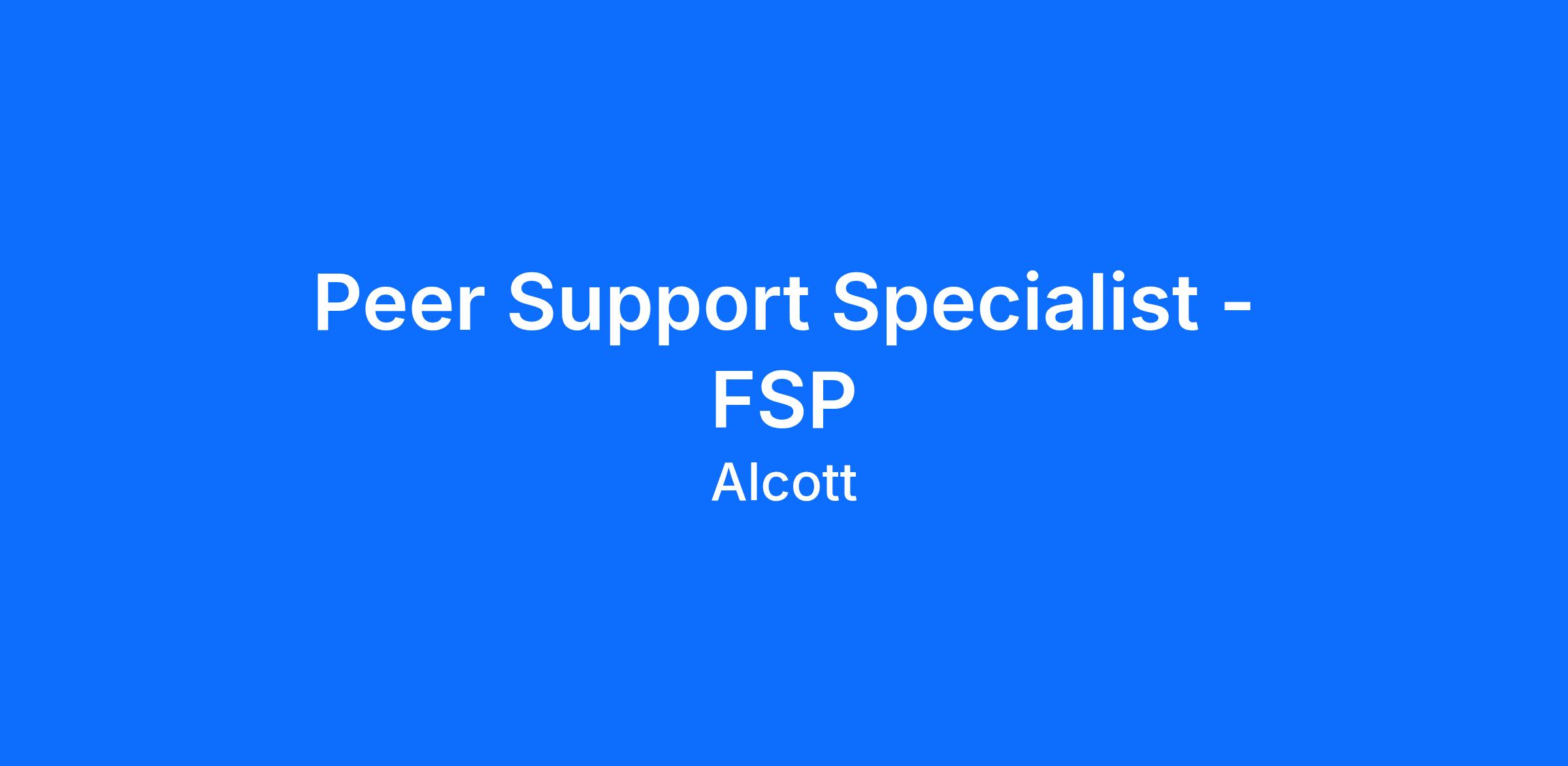 Alcott, a leading nonprofit agency dedicated to providing vital mental health and supportive housing services to low-income adults across Los Angeles County, is seeking a compassionate and dedicated Peer Support Specialist to join our Full-Service Partnership (FSP) team.