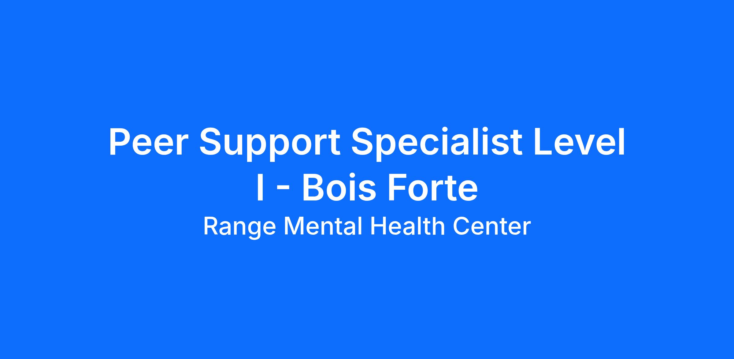Job Title: Peer Support Specialist Level I – Bois Forte