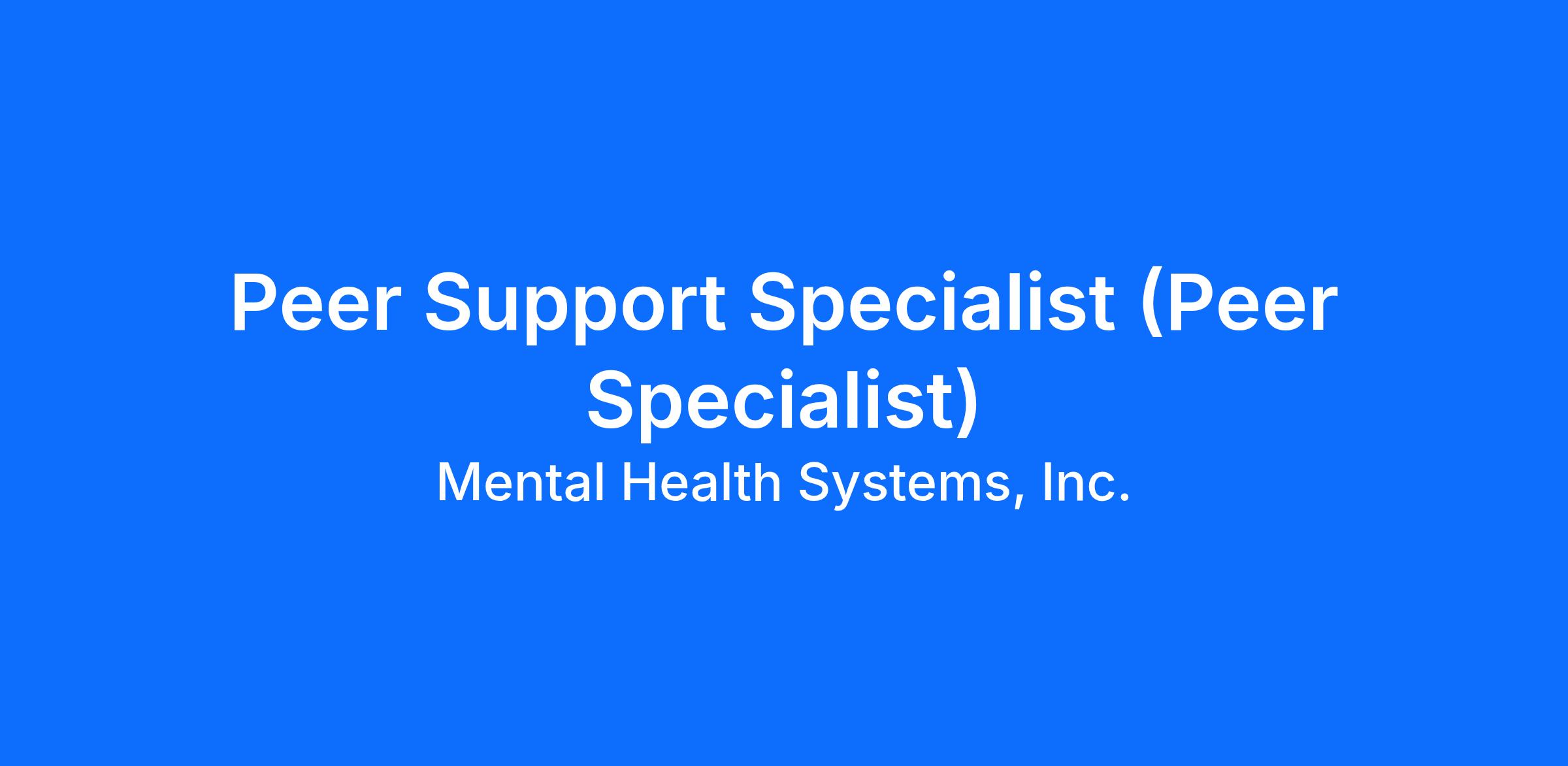 Peer Support Specialist (Peer Specialist)