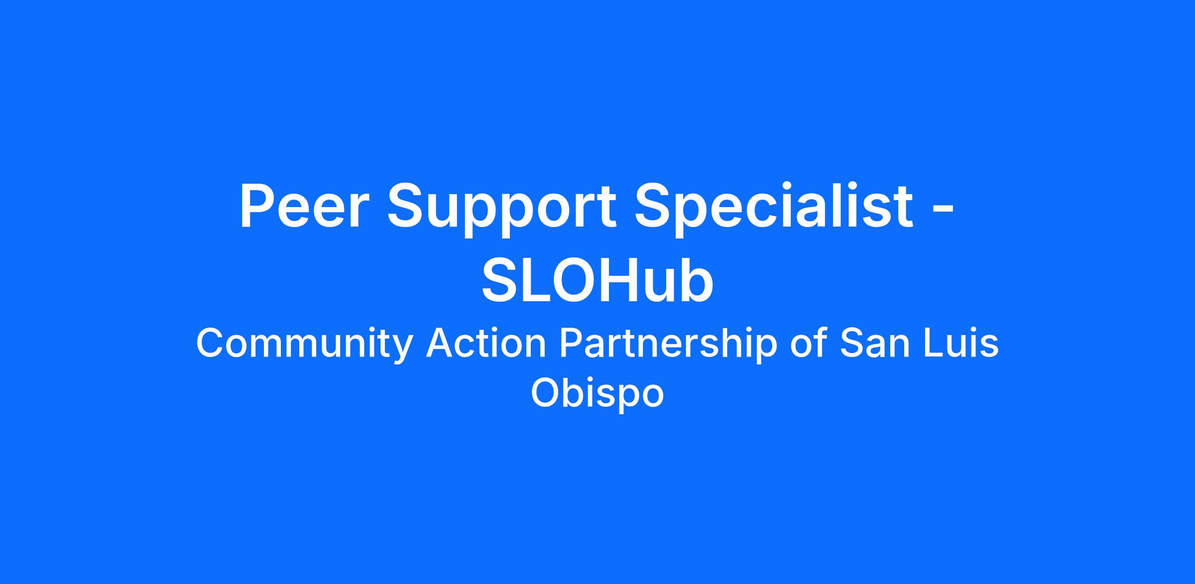 Under the general supervision of the SLO HUB Supervisor and/or the Clinical Program Manager & Homeless Services Director, the Peer Support Specialist assists the SLO HUB Case Manager in supporting chronically homeless adults with co‑occurring mental health and substance use disorders. This role provides peer mentorship and support to help participants identify client‑centered pathways out of homelessness, engage in treatment, and work toward stable housing and self‑sufficiency. Through encouragement, guidance, and lived‑experience support, the Peer Support Specialist promotes recovery, stability, and alignment with CAPSLO’s mission.