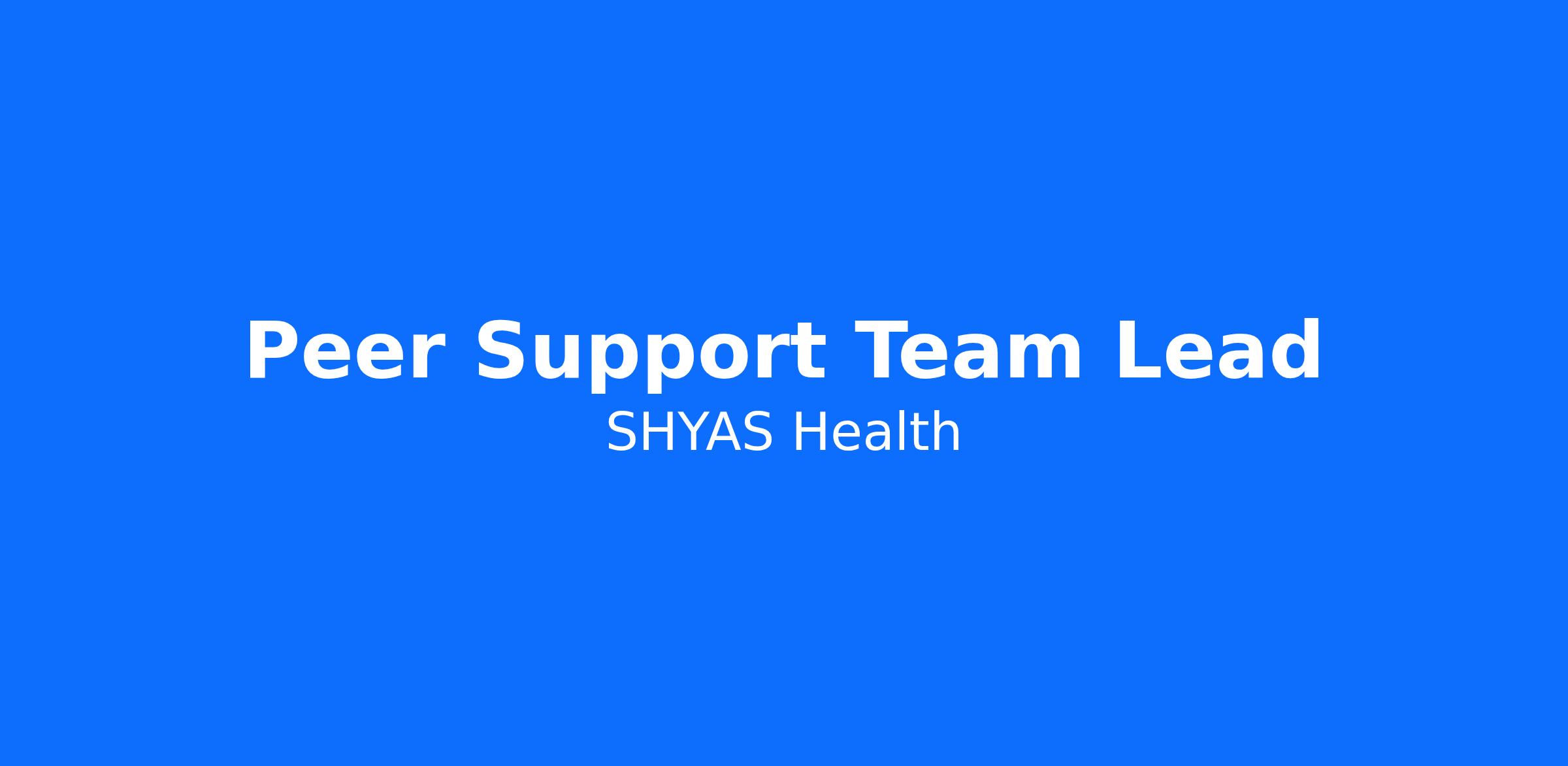 SHYAS Health is currently hiring Peer Support Team Leads to join our strong team in SANFORD, CHARLOTTE, and SALISBURY NC. Our ideal candidate is a self-starter, motivated, engaged, possess leadership skills, and has a passion for helping others.