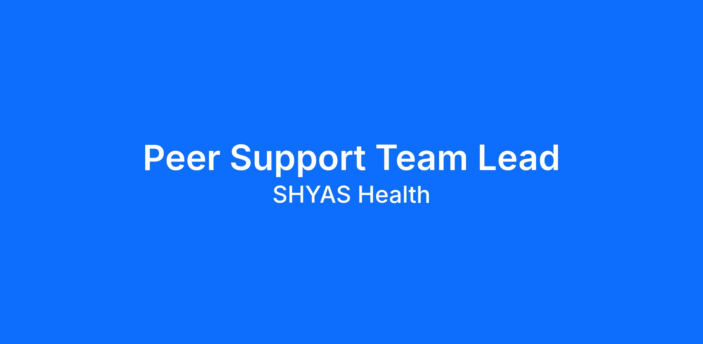 SHYAS Health is currently hiring Peer Support Team Leads to join our strong team in SANFORD, CHARLOTTE, and SALISBURY NC. Our ideal candidate is a self-starter, motivated, engaged, possess leadership skills, and has a passion for helping others.