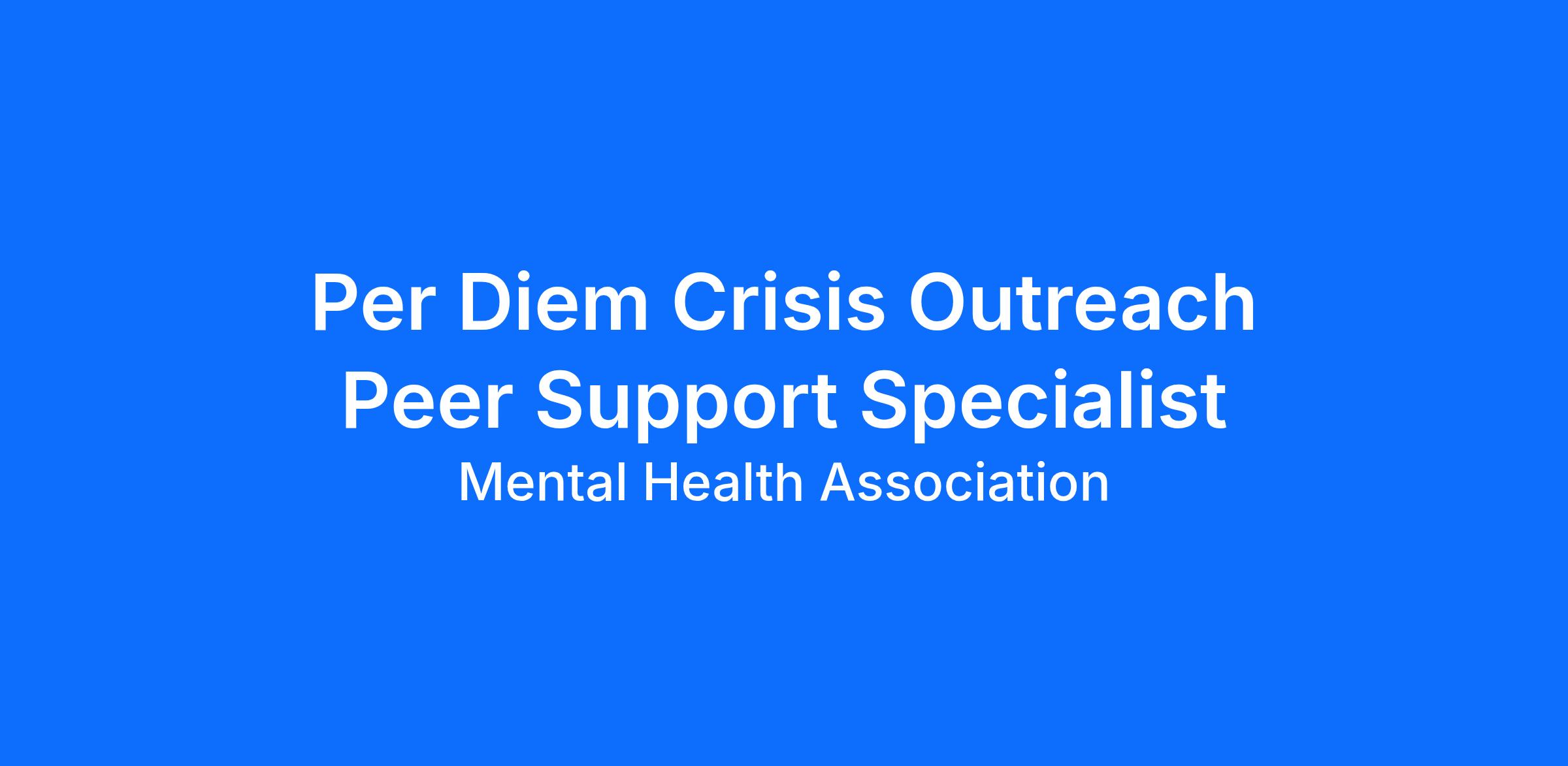 The Mental Health Association is seeking Per Diem Peer Support Specialist for our new program, 988 Mobile Crisis Outreach Team, operating out of Hudson county.