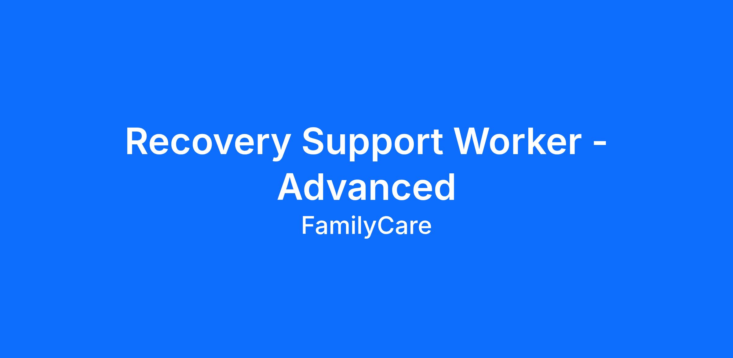A Recovery Support Worker appointed at the Advanced Level will have extensive knowledge and experience that allows them to operate at an advanced level, manage higher levels of case complexity and provide support and mentorship to other staff, including direct supervision of some team members.