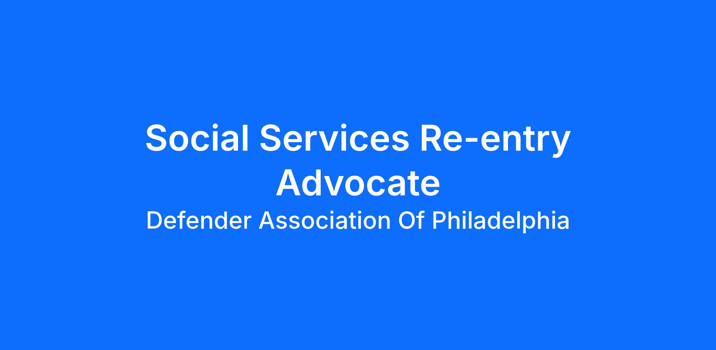 As a Social Services Re-Entry Advocate at the Defender Association, you will be on the front lines to help reduce recidivism. This unique role bridges the gap between incarceration and re-entering the community, providing essential support to help reduce recidivism and help our client reclaim their lives. This role will be uniquely positioned to impact and improve client outcomes through direct services work and light case management. The Re-Entry Advocate role will be hybrid – serving both clients recently released from custody through the Philadelphia Department of Prisons re-entry trailer and clients in the community through the Defender Office at the Criminal Justice Center. This role will work alongside dedicated attorneys to provide high-impact direct services, navigating the complexities of the criminal justice system to ensure every client has a fighting chance at a fresh start