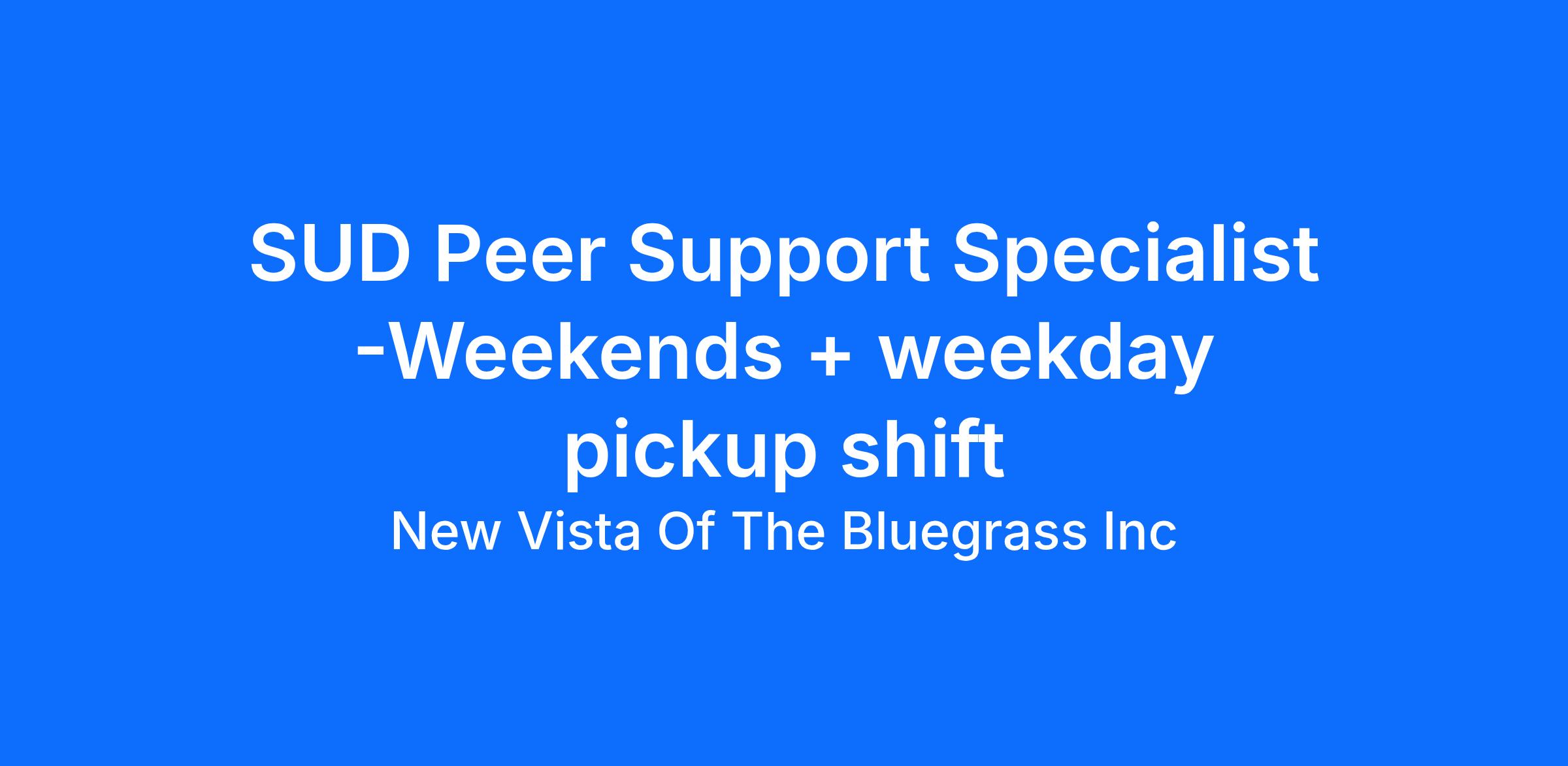 SUD Peer Support Specialist -Weekends + weekday pickup shift