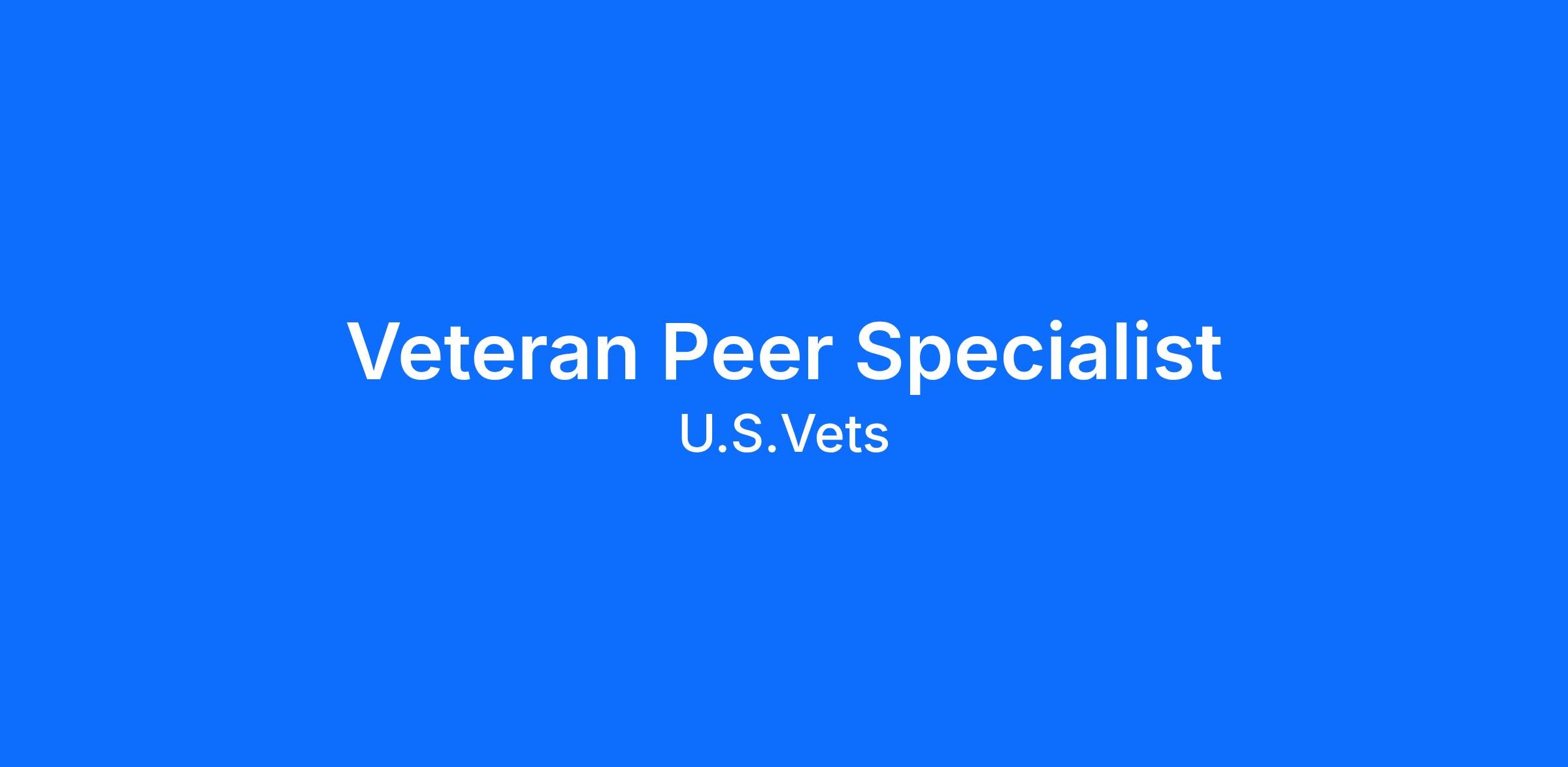 U.S.VETS has various programs in which a Peer Specialist may be assigned to one or more, including Veteran Support to Self-Reliance, Transitional Housing, Long-Term Supportive Housing, Mental Health, and Veteran Peer Access Network programs, that have additional program-specific duties as outlined below.